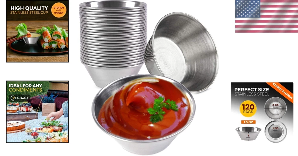 Reusable Stainless Steel Ramekins - 1.5 Oz Sauce Cups, Dishwasher Safe & Sturdy ‹ › ‹ › ‹ › ‹ › ‹ › ‹ › ‹ › ‹ › ‹ › Reusable Stainless Steel Ramekins - 1.5 Oz Sauce Cups Dishwasher Safe & Sturdy Rust-Resistant & Food Safe: Crafted from premium stainless steel, these ramekins are guaranteed to be rust-resistant and safe for all your food needs. Enjoy serving both cold and hot sauces with peace of mind. Durable & Reusable: Built to endure, these sauce ramekins are designed for repeated use. No more worries about rusting, cracking, or chipping – with proper care, they will maintain their integrity for years. A perfect eco-friendly alternative to disposable plastic and paper cups. Stackable & Easy Storage: Effortlessly stack these metal sauce cups for convenient storage. Their elegant design not only looks great on any table but also allows for space-saving organization. Easy to Clean: The sleek, polished surface allows for quick and easy cleanup. Food remnants slide off effortlessly, making them both hand-washable and dishwasher safe, Lightening your workload. Multi-Purpose: Ideal for both home and restaurant settings, our mini condiment dishes are perfect for serving salad dressings, dipping sauces, condiments, butter, pudding, and much more. With ample quantity, you're well-equipped for events, parties, BBQs, catering, camping, and beyond. Why Choose Our Reusable Stainless Steel Ramekins? Elevate your dining experience with these exquisite Reusable Stainless Steel Ramekins. Their durable and elegant construction makes them the ideal choice for a wide variety of sauces and condiments. Say goodbye to flimsy disposable cups and hello to a sustainable, stylish solution. Perfectly designed for both personal and professional use, these ramekins offer unparalleled convenience and an effortless aesthetic, ensuring that you can impress your guests without compromising on quality. Order now and redefine your serving experience! Shipping Free & Fast Shipping - We offer free shipping to most of the USA with a normal delivery time of 3-7 days. However, due to the current situation, additional delivery time (up to 3 weeks) may be required for some items. Alternative Carriers - We may use alternative carriers (e.g. USPS, FedEx, UPS, etc.) to ensure your package arrives safely and on time. Due to the use of multiple carriers, we are unable to provide a tracking number automatically. Handling Time - Orders are processed and shipped within 1-2 business days of receiving cleared payment. Shipping Restrictions - Shipping to Alaska, Hawaii, Puerto Rico, Guam, and other US territories may incur shipping charges or delivery restrictions. Please contact us before ordering, or your order can be refunded/cancelled. State Restrictions - There may be restrictions based on your state of purchase. For example, certain items may not be shipped to California due to state regulations. Contact for Tracking Updates - If you require tracking updates or have any concerns about the delivery of your order, please feel free to contact us, and we will be happy to assist you. Return 30-Day Hassle-Free Returns - We want you to be completely satisfied with your purchase. If you are not, you can return the item within 30 days of receiving it for a full refund or exchange. Easy Return Process - To start a return, simply contact us and we will provide you with a prepaid return shipping label and detailed instructions. Restocking Fee - There are no restocking fees for returns. However, the buyer is responsible for return shipping costs if the return is not due to a seller's error. Refund Processing Time - Refunds will be processed within 5 business days of receiving the returned item in its original condition. Payment We accept all major credit cards, PayPal, and Apple Pay for your convenience. Your payment information is secure and encrypted to ensure a safe and seamless transaction. Please complete your payment within 3 days of purchase to avoid any delays in shipping. Feedback Your feedback is extremely important to us. We strive to provide the best products and customer service possible. If you are satisfied with your purchase, please take a moment to leave us a positive review. If you have any concerns or issues with your order, please contact us before leaving negative feedback. We are committed to resolving any problems and ensuring your satisfaction. Contact Us If you have any questions or concerns, please feel free to reach out to our customer support team. You can contact us through the eBay messaging system. We are available Monday to Friday, 9:00 am to 5:00 pm EST, and we will do our best to respond to your inquiry within 24 hours. Buy it now and enjoy a pleasant shopping experience! UPC: Not Set Expiration Date: Not Set Calories per 100 g/mL: Not Set Course: Condiments Number in Pack: 120 Product Name: Not Set Style: Classic Unit Quantity: 1.5 oz Food Specifications: Reusable,Dishwasher Safe,Durable,Freezer Safe Labels & Certifications: Not Set Brand: Unbranded Product: Dipping Sauce Allergens: Not Set Calories per Serving: Not Set MPN: Not Set Number of Servings: Not Set Serving Size: Not Set Regional Cuisine/Region: Not Set Country/Region of Manufacture: Not Set Food Aisle: Pantry Item Weight: 4.97 pounds Unit Type: oz