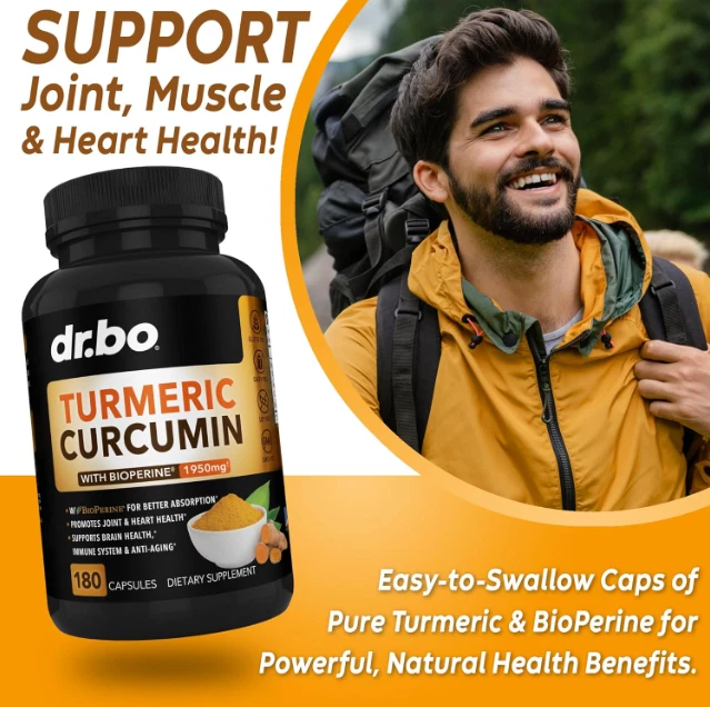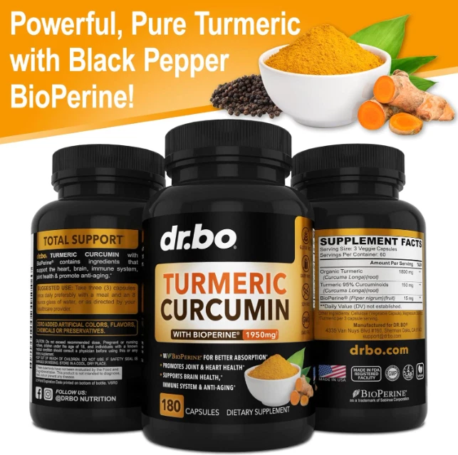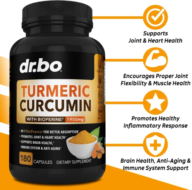 Turmeric Curcumin w/ Ginger & BioPerine Black Pepper - 1,950mg 95% Standardized US Warehouse - FREE & FAST Shipping in US Product Description: These statements have not been evaluated by the FDA. This product is not intended to diagnose, treat, cure, or prevent any disease or health condition. Extra Strength Turmeric Curcumin: Premium T3 organic turmeric supplement complex 1950mg with 95% standardized curcuminoids & 15mg BioPerine black pepper extract for max absorption & bio availability BioPerine for Max Absorption: BioPerine, a patented black pepper extract, supports up to 2000x better absorption than just pure turmeric capsules; tumeric and curcumin for immune and joint support Natural Joint Support Supplement: Turmeric Curcumin with black pepper is a super powerful root herb extract, natural joint support antioxidant & curcuma longa is a main compound in tumeric powder Organic Turmeric Capsules: Our Organic Turmeric Curcumin with BioPerine supplement capsules have 1950mg of Curcuma Longa per serving & BioPerine black pepper extract; joint supplements for men women High Potency: Vegan Organic Tumeric and Curcumin supplements use the best premium quality ingredients; high grade turmeric pills, the most potent turmeric curcumin with black pepper bioperine Feedback: 1.Any question for your order, please contact us in time, we will reply to you within 24 hours and give you a satisfactory answer. 2.If you are satisfied with our products and services, hope to take up your a little precious time to leave feedback reviews for our products.Thanks! 3.Your satisfaction is our effort. Welcome to order again! Have a great day! Our Policy: 100% Satisfaction Guarantee 20% of restocking fee will be charged for return item