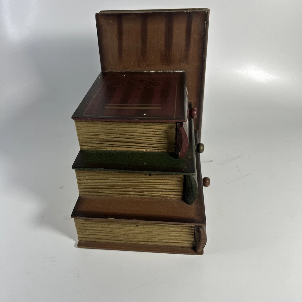 積み重ね本 収納ボックス 引き出し3つ 木製 家の装飾 トリンケット ジュエリー レトロ