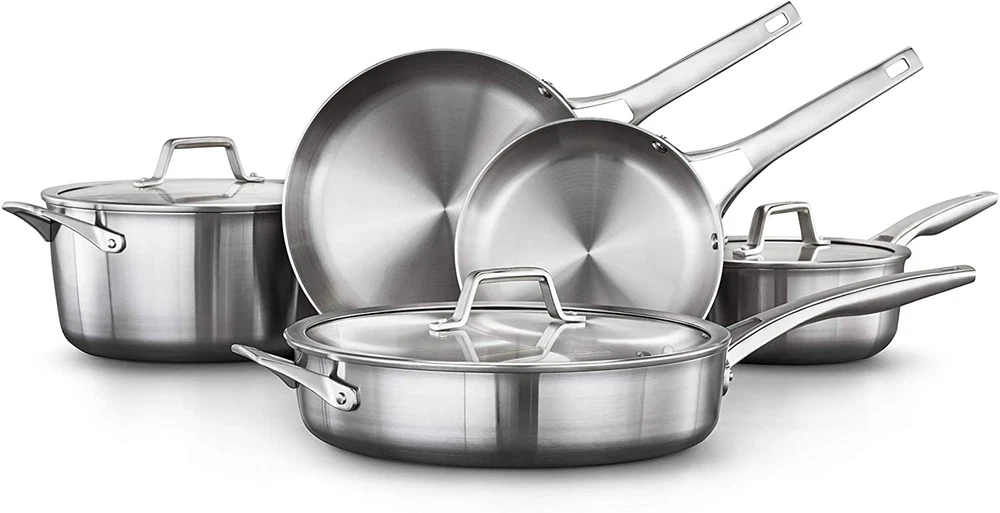 Store New Arrivals Add to Favorite View Feedback Contact Calphalon® Premier™ Stainless Steel 8-Piece Set Description Item model number 2029633 Global Trade Identification Number 00016853075041 Closure Material Glass Color Silver Included Components 8" Fry, 10" Fry, 2.5 qt Sauce with cover, 5qt Saute pan with cover, 6 qt stock pot with cover Brand Calphalon Material Stainless Steel Country of Origin China Is Dishwasher Safe Yes Material Type Stainless Steel Item Weight 26.7 pounds Is Oven Safe Yes Handle Material Stainless,Stainless Steel,Metal,Steel Size 8-Piece Material Type Free Bisphenol-A (BPA) Free Manufacturer Calphalon Special Feature Gas Stovetop Compatible, Electric Stovetop Compatible, Induction Stovetop Compatible Product Dimensions 28.94 x 16.34 x 7.68 inches Compatibility Options dishwasher safe,electric,gas,induction,oven safe Number of Pieces 8 Heavy-gauge aluminum core distributes heat evenly, for exceptional browning, searing, and sauteing Fully clad, 3-layer metal construction delivers performance and durability for years to come Long handles stay cool on the stovetop Tempered glass lids Oven-safe up to 450 degrees F, so you can easily go from the stovetop to the oven Dishwasher-safe for easy cleanup Compatible with most stovetops, including induction, gas, electric, and glass Lifetime warranty Calphalon Premier Stainless Steel Cookware delivers precision cooking performance, with an elegant, classic look that will inspire any chef. The 3-layer metal construction features a heavy-gauge aluminum core that distributes heat evenly and allows you to brown, sear, and saute with consistency and confidence. The elegant stainless steel finish is dishwasher-safe for easy cleanup. Calphalon Premier Stainless Steel Cookware is oven-safe up to 450 degrees F so it can go from the stovetop to the oven for heating and cooking versatility. Unlock your culinary genius with Calphalon Premier, and experience superior cookware that's built to last. Designated Chemical Disclosure: This product contains Aluminum, Stainless Steel (Iron, Chromium, Nickel, Manganese, Copper, Phosphorus). ABOUT US We offer the best prices around on high quality products. Our E-store includes media such as books, movies, music and games while offering electronics, toys, sporting apparel, clothing, tools, general home, garden items and more. SHIPPING We are always working hard to ensure your package arrives as soon as possible. Please understand that some factors like weather, high postal traffic, and the performance of shipping companies are outside of our control. For shipping outside of the continental USA, we only use eBay's Global Shipping Program.The item is shipped to KY and then sent to the rest of the world. International customers are responsible for all duties and taxes. Continue to check out in order to calculate costs for shipping the item to your country. Messages regarding eBay's Global Shipping Program MUST be directed at eBay EXCLUSIVELY. RETURNS We offer a 30-Day Return Policy on items which you are not completely satisfied with. You have the option for a full-refund or an exchange of the item. No returns are available on items shipped outside of the USA. PAYMENT We accept PayPal. CONTACT US This page content is yet to come Please ad us to your favorite seller and visit again later Thank You CUSTOMER SATISFACTION We try our very best to make sure every customer is completely satisfied. If there's a problem, message us! We're happy to help. WE ACCEPT Copyright © 2021 AutoDS. | All Rights Reserved