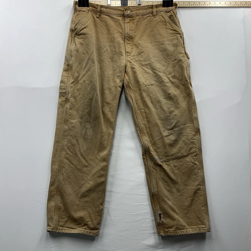 Carhartt Flannel Lined Carpenter Pants 40 x 32 Distressed Holes Stained B111 BRN Beater pair. Stained in several places. Each leg has a hole in it, both on the inside of the legs. Would take a pretty small patch to fix the holes. They are between 1-2 inches long and around 3/4's of an inch wide. They were washed in scent and dye free soap, and this is as good as they get. Still have plenty of life left in them especially if the holes are repaired properly. Warm pair of pants, they weigh almost 3 pounds. We are passing our shipping discount on to you. Thank you for Looking! We hope you will check out our other items as you never know what we may find. Our shipping might be a little more than others at times but that is because we pack things to withstand the worst that can happen to them. When you get your order in one piece and see the way it is packaged, we hope you will see why our cost to ship is higher at times than others. Materials to protect your order add weight and size to the package. We are continually looking for ways to reduce costs for you, but we will not reduce what we feel is the appropriate protection for your order. You will never get an order from us that is just tossed in a box free to move inside the box. Every order is packaged with its probably getting thrown or dropped at some point on its way to you in mind. All Clothing Items are washed and dried using scent and dye free products.