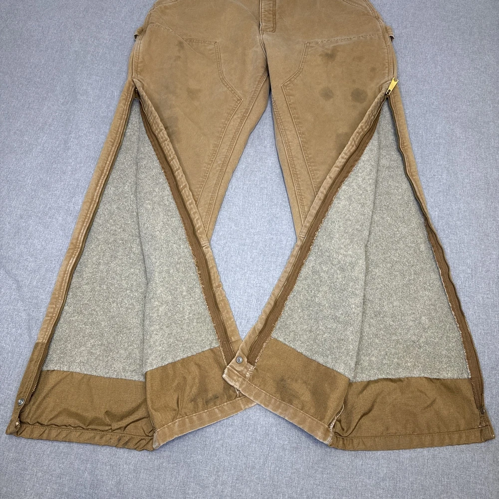 These Carhartt B157 BRN work pants are perfect for both casual and workwear occasions. Made of durable duck canvas material with a sherpa lining, they are heavyweight and perfect for winter, fall, and spring seasons. They come in a size 38 waist and hard to find 34 inseam. Pants are in excellent structural condition with no rips, tears or fraying. There are stains and fading on several spots on the pants, see photos for details. Fast one day handling. Shipped via USPS ground advantage. Unsatisfied for any reason? 30 day return policy offered with no questions asked. Thanks for looking!