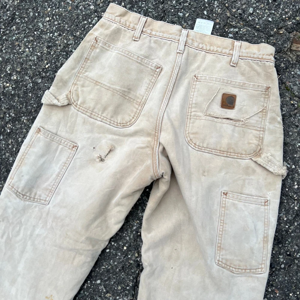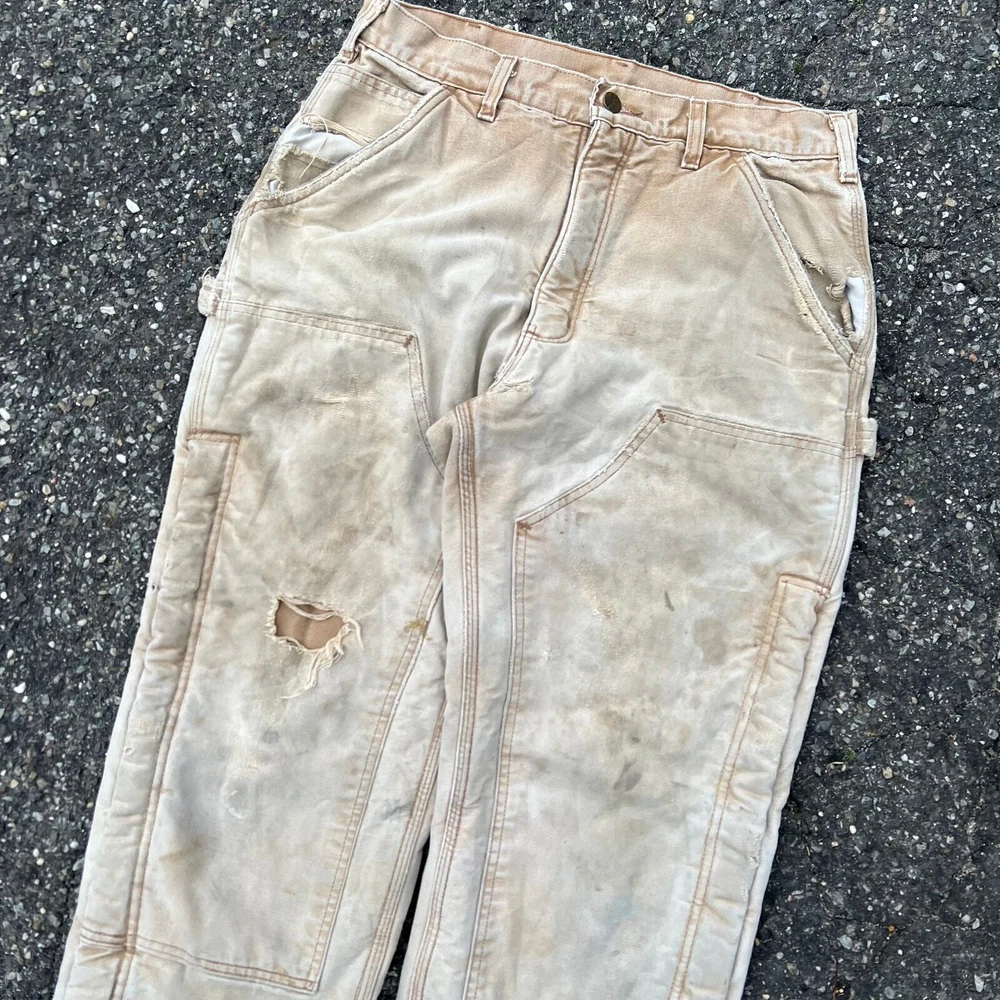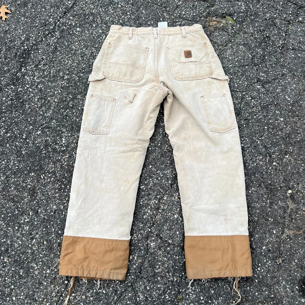 Vintage carhartt brown lined double knee work wear carpenter pants. Great pair. Measure 30x29 and a 9.25 leg opening. Please check measurements before purchasing. I do my best to show any flaws in pictures. Quick shipping! Bundles encouraged! @ants_haul on Instagram. 415!!!