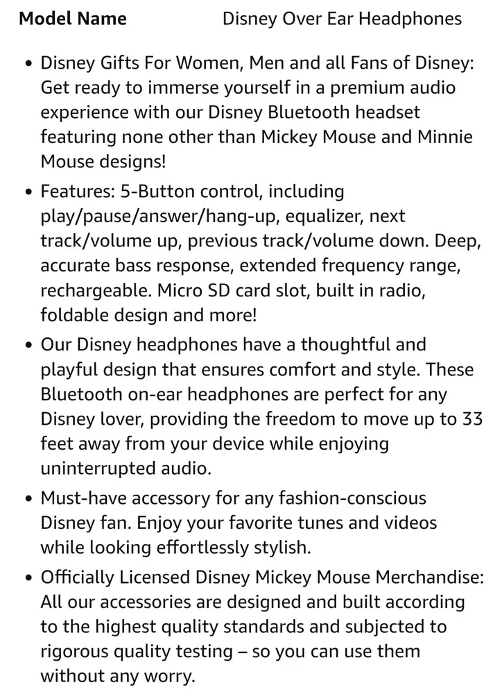Cute Mickey Mouse Headphones Foldable, Bluetooth, Over the Ear No aux cable ☆ See picture with specifications for measurements, condition and material EUC (excellent used condition)- Minor wear- working condition Please see pics as they are part of description and flaws will be in photos ♡ MAKE US AN OFFER ♡ ☆Leave us a comment with any question ♡♡ FREE shipping- mailed USPS Ground advantage