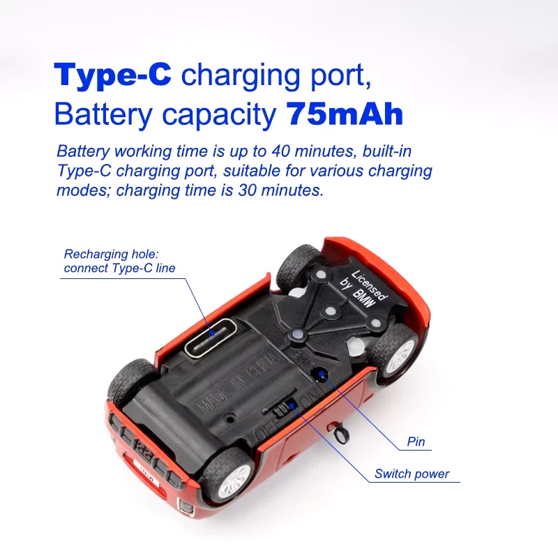 eBay Product selling points Remote Control Distance:Enjoy a 30-meter remote control range, ensuring you're always in command. Ready-to-Go Assembly:Comes fully assembled, ready for immediate mini stock race car fun. Extended Playtime:With a 40-minute playtime and quick 75mAh LiPo charging, the fun never stops. 04 Mini Cooper S|Mini Cooper Bolt Pattern|Material Quality:Crafted with durable metal and rubber, this RC car withstands intense racing action. Certified Safety:CE/FCC/ROHS/CCC certified, this mini cooper model guarantees safe racing. Model Name:Mini Cooper 1:76 RC car Licensed by: BMW Group Frequency Bran:2.4GHz 1:76 RC car size:50x23x19mm Product Net Weight:355g Certificate:CE/FCC/ROHS/CCC Control Distance:30M Playing time: 40min Charging battery: 75mAh LiPo Trim function: Yes REV: Steering reverse Color: Purple What remote conrol can fit this car: Turbo Racing VT system transmitter Pancing List: 1* Mini Cooper 1:76 RC car 1* Type C charging cable 1* Packing box 1* User manual Specifications CE Certificate Barcode Yes Certification CE Throttle servo 1:76 RC Sports Car Steering servo 1:76 RC Sports Car Power 1:76 RC Sports Car State of Assembly Ready-to-Go Flight Time 30min Tire Track 1:76 RC Sports Car Wheelbase Mini Cooper Car Warning 1:76 RC Sports Car Remote Distance 30 meter Warranty 1:76 RC Sports Car Scale 1:76 Dimensions 50*23*19mm Torque 1:76 RC Mini Cooper Car Model Number 1:76 RC Sports Car Design Cars Package Includes Original Box Control Channels 12 Channels & Up Controller Mode MODE2 Charging Voltage USB Cable Remote Control Yes Material Metal,RUBBER Brand Name U-Angel-1988 Recommend Age 14+y Origin Mainland China Type Car Features REMOTE CONTROL