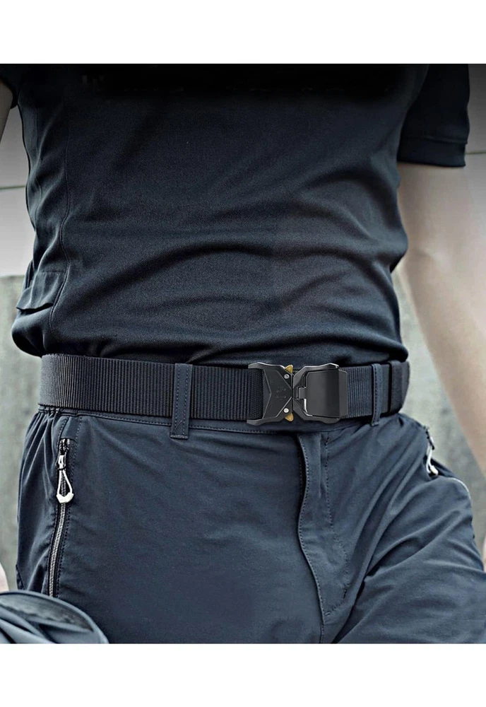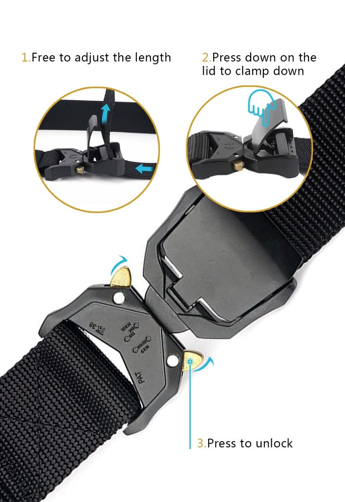 DURABLE COMBAT-READY CONSTRUCTION-Made With Heavy Duty IndustrialNylonMore than that, it is very sturdy, which make your waist be more comfortable as well as stay tight, when you take large range of activities. UNIQUE DESIGN-If you are looking for a belt that reflects your outstanding personality,This belt touts the high-quality metal quick release belt,The crafted heavy-duty buckle, made of zinc alloy, has very strong load-bearing capacity, which can meet your different wearing requirements. FIT EVERYWHERE-It is widely used for outdoor activities, such as camping, hiking, cycling, fishing, mountain climbing, travel, field training, etc. The automatic belt design is elegant, suitable for jeans, casual pants, suit pants,Perfect mens casual belt that will soon become your favorite go to everyday leather belt. EASY TO USE-Slide the belt into the sliding, pull the leather belt through, then click-itsimply automatically locks. To release the casual belt, gently push the lever on the side of the automatic buckle, then the lock snaps shut. Simple! RISK FREE ORDERS-We are committed to making our customers satisfied. If there is any problem with the product, contact us without hesitation.