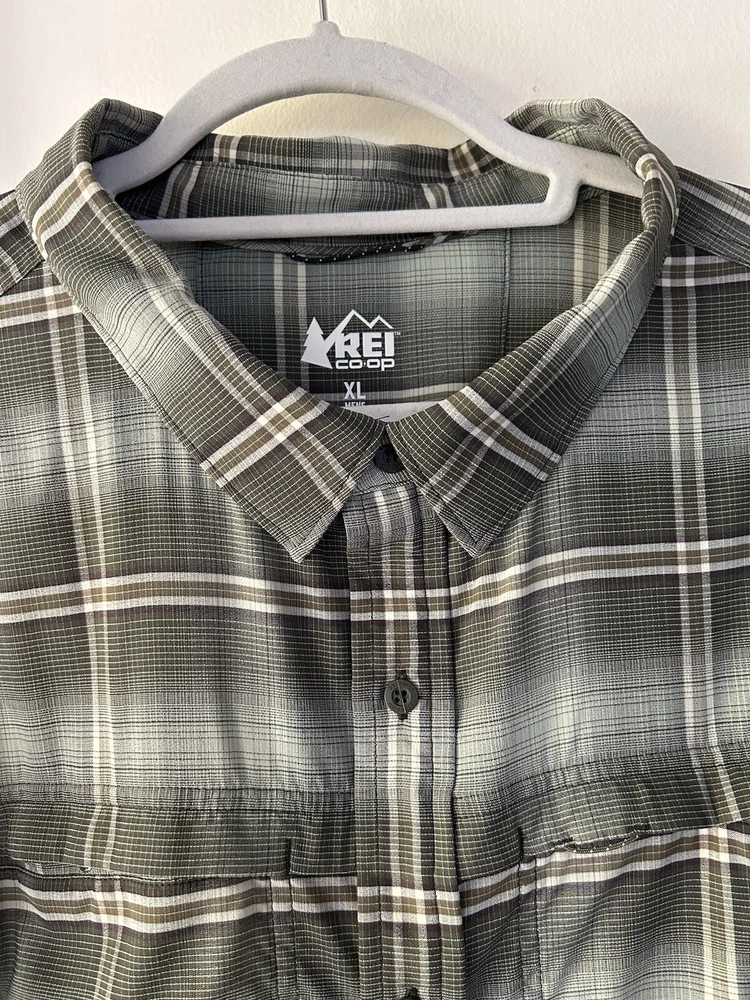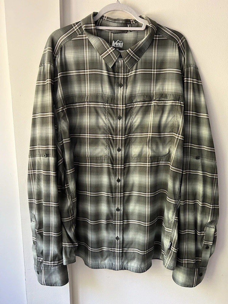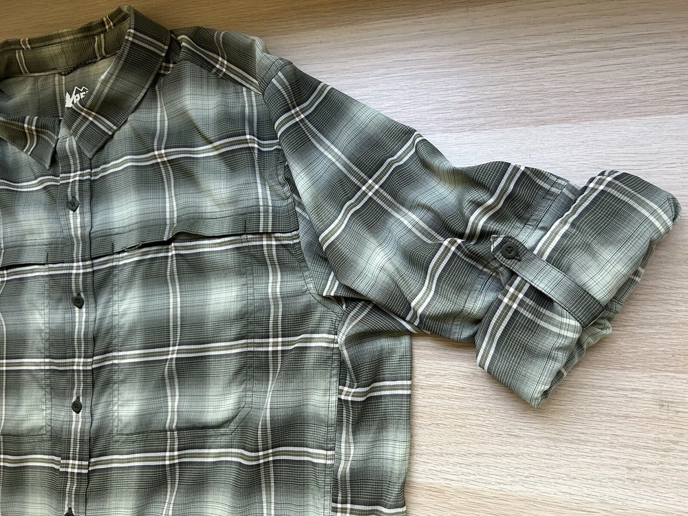 Рубашка кооперативная мужская REI XL зеленая клетчатая SAHARA с длинным рукавом на пуговицах вентилируемая