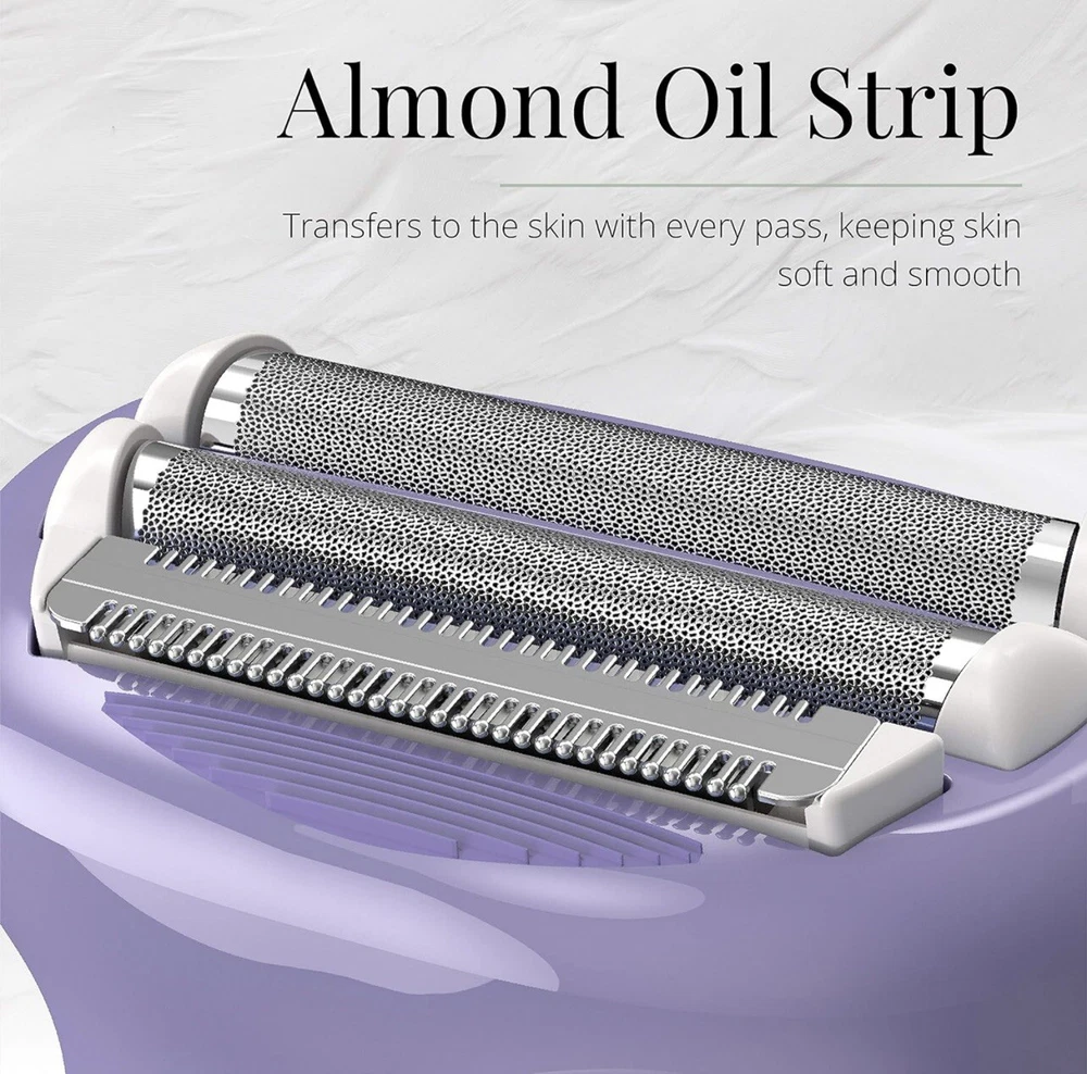 REMINGTON Smooth & Silky Electric Wet/Dry Shaver White & Purple Model WDF5030. It’s brand new, open box! Item: R3(11) 4 Blade Shaver: The hypoallergenic foils and trimmers move smoothly across the skin and leave no hair behind Optimal Angle Head: Shaving blades are positioned so that foils stay flush to the skin for a close, comfortable shave Flex Dual Sided Trimmer: Get speed and smoothness from this special blade that preps longer hairs to be cut by the foils Lift Logic Foils: The unique foil design allows for even shaving of all hair lengths by angling hairs towards the blades One full charge allows 30 minutes of cordless usage time; Recharge Time: 24 Hours