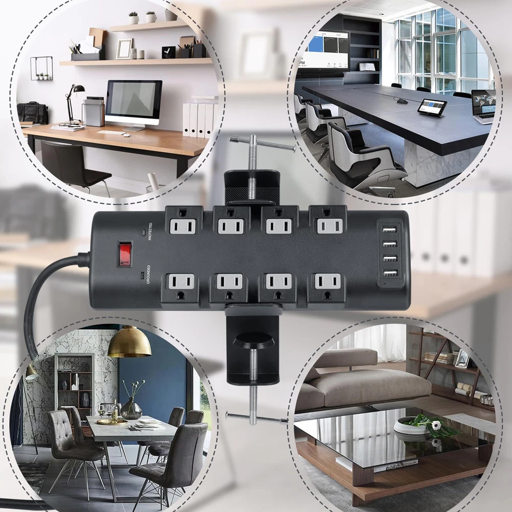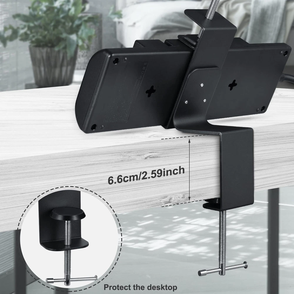 🗜️ Easy Use 🗜️ With Power Strip Clamp you don't need to put the plug into a place for the sake of desktop tidiness, nor do you need to be behind the desk or bend down to the ground to plug and unplug the power. 🗜️ Adjustable Use 🗜️ Fix the Power Strip Holder on the desk (0.4 to 2.75 inches thick), the width of the Power Strip (2.55 to 4.13 inches) it will fit, and does not require any punching holes. Desk Clamp also uses a rubber gasket as protection, and after the overall installation you will find that it meets your requirements for the drain plug without affecting the neatness of your desk. 🗜️ Space Saving 🗜️ The Table Clamp features a slim metal design with a 45° tilt designed to maximize your use of space. Even if the table is against the wall, it can still be used. 🗜️ Sturdy Durable🗜️ Power Strip Table Clip are made of high quality metal for stability and durability. It can be easily replaced with other widths of power strip. 🗜️ Flexible Change 🗜️ No need to buy a power strip with clips just to want a clip, because many times what we are missing is not a power strip, but an Power Strip Mount.