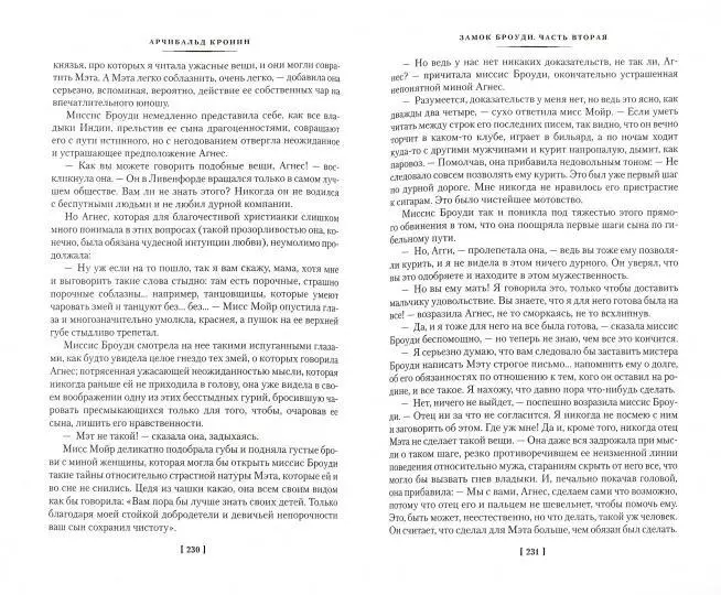 Самый популярный роман знаменитого прозаика Арчибальда Кронина. Многим известна английская пословица "Мой дом - моя крепость". И узнать тайны английского дома, увидеть "невидимые миру слезы" мало кому удается. Однако дом Джеймса Броуди стал не крепостью, для членов его семьи он превратился в настоящую тюрьму. Из нее вырывается старшая дочь Мэри, уезжает сын Мэт, а вот те, кто смиряется с самодурством и деспотизмом Броуди - его жена Маргарет и малышка Несси, - обречены... Пять причин купить 1Арчибальд Кронин - прославленный автор, классик литературы XX века, чьи произведения заслужили всемирное признание и любовь, а также неоднократно экранизировались. 2«Замок Броуди» - один из самых известных произведений писателя. Книга сразу после публикации стала бестселлером и позволила Кронину оставить медицинскую практику ради литературы. 3Роман раскрывает тему взаимоотношений отцов и детей. Деспотичный глава семейства держит в страхе свою семью - история, которая не теряет актуальность по сей день. 4Образец идеального социального романа. Кронин безжалостно демонстрирует на примере Джеймса Броуди, к чему может привести погоня за мнимым общественным одобрением. 5Книга станет отличным подарком как для поклонников творчества Арчибальда Кронина, так и для читателей, только открывающих для себя этого уникального писателя.