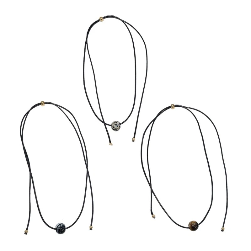 Adjustable Length Spotted Stone Necklace Natural Stone Bead Choker for Women Features: Make a statement with this adjustable black rope necklace featuring a natural stone pendant for adding a touch of to any outfit. Crafted with alloy, this necklace is not only durable but also to tarnish, making it suitable for long term wear. Designed for couples and fashion enthusiasts, this necklace exudes a vintage charm that appeals to those who appreciate retro styles. Whether it's for everyday wear, parties, or special occasions, this versatile necklace enhances your overall look with its unique and sophistication. Showcase your individuality with this of a kind necklace a must have accessory for those who appreciate expression. Specifications: Natural Stone Size:Approx.50cm/19.68" Package Includes: 1Piece Stone Necklace note: Please allow 1-2cm errors due to manual measurement,Please make sure that you do not mind before you order. Due to the difference between different monitors, the picture may not reflect the actual color of the item.