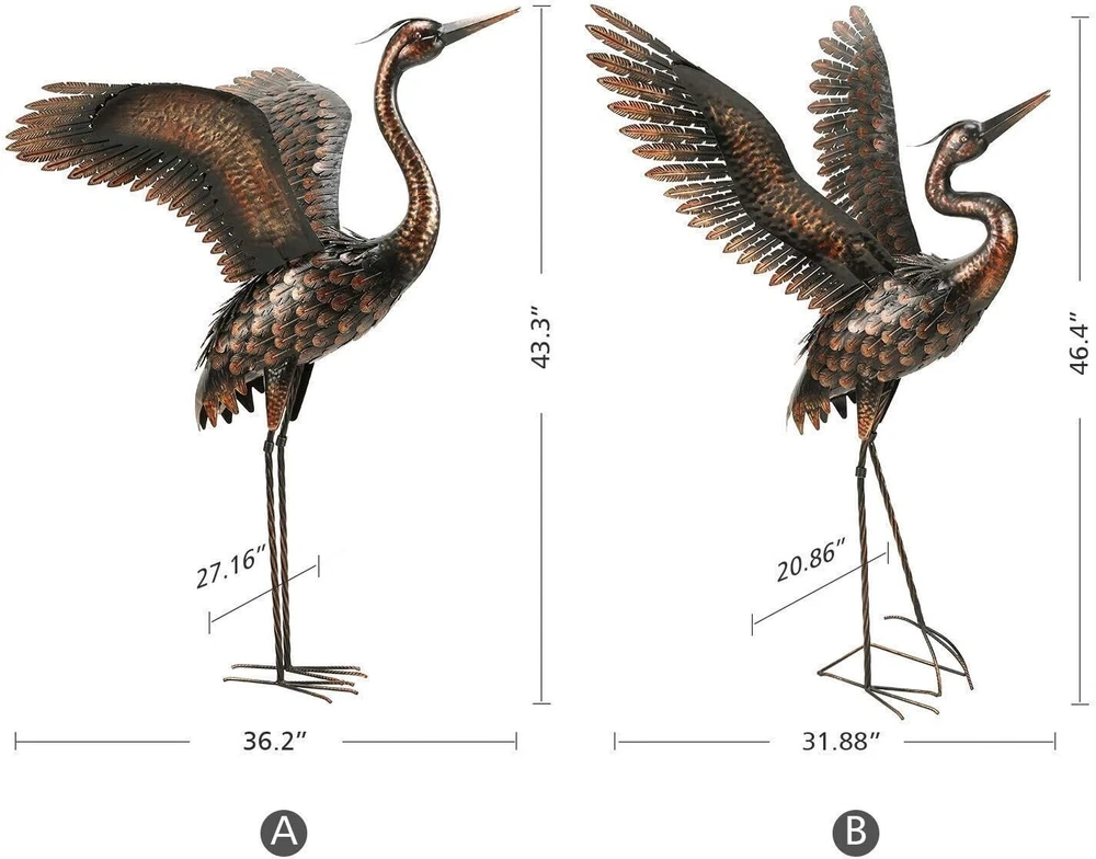 Handcrafted Black and Gold Heron Crane Garden Statues - Majestic Lawn Art ‹ › ‹ › ‹ › ‹ › ‹ › ‹ › ‹ › ‹ › ‹ › ‹ › ‹ › Handcrafted Black and Gold Heron Crane Garden Statues Majestic Lawn Art Transform your garden into a serene sanctuary with these exquisite handcrafted Black and Gold Heron Crane Garden Statues. A perfect blend of artistry and nature, these statues add a touch of elegance and grace to any outdoor space. Features: Handcrafted from thick metal with intricate details, ensuring durability and charm. Finished in striking black and gold, making them an attractive focal point in any yard. Life-like proportions (43.3 inches and 46.4 inches) provide realistic detailing that captivates onlookers. Includes U-shaped spikes for stability, ensuring your statues stay securely anchored to the ground. Shipped in perfect packaging for safe arrival and easy assembly with no tools required. Friendly customer service for any inquiries or support required. Benefits: Unique traditional craftsmanship focusing on individual artistry and attention to detail. Durable design that withstands the elements while maintaining a stunning appearance. Add a majestic and prominent figure to your garden, creating an inviting ambiance for your guests. Brings a peaceful touch of nature to patios, lawns, and garden spaces. Enjoy the beauty of these sculptures for years to come, as they are designed to last. Why Choose Our Black and Gold Heron Crane Statues? Unlike mass-produced items, our garden cranes reflect the passion and precision of traditional craftsmanship. Each piece is thoughtfully created by skilled artisans who pay special attention to every detail, including the meticulous arrangement of feathers. Elevate your outdoor decor with a pair of stunning heron statues that not only enhance your landscape but also showcase your appreciation for exquisite art. Order your Handcrafted Black and Gold Heron Crane Garden Statues today and bring a slice of artistry and nature directly into your yard! Shipping Free & Fast Shipping - We offer free shipping to most of the USA with a normal delivery time of 3-7 days. However, due to the current situation, additional delivery time (up to 3 weeks) may be required for some items. Alternative Carriers - We may use alternative carriers (e.g. USPS, FedEx, UPS, etc.) to ensure your package arrives safely and on time. Due to the use of multiple carriers, we are unable to provide a tracking number automatically. Handling Time - Orders are processed and shipped within 1-2 business days of receiving cleared payment. Shipping Restrictions - Shipping to Alaska, Hawaii, Puerto Rico, Guam, and other US territories may incur shipping charges or delivery restrictions. Please contact us before ordering, or your order can be refunded/cancelled. State Restrictions - There may be restrictions based on your state of purchase. For example, certain items may not be shipped to California due to state regulations. Contact for Tracking Updates - If you require tracking updates or have any concerns about the delivery of your order, please feel free to contact us, and we will be happy to assist you. Return Please see our eBay Return Policy. Thank you. Payment We accept all major credit cards, PayPal, and Apple Pay for your convenience. Your payment information is secure and encrypted to ensure a safe and seamless transaction. Please complete your payment within 3 days of purchase to avoid any delays in shipping. Feedback Your feedback is extremely important to us. We strive to provide the best products and customer service possible. If you are satisfied with your purchase, please take a moment to leave us a positive review. If you have any concerns or issues with your order, please contact us before leaving negative feedback. We are committed to resolving any problems and ensuring your satisfaction. Contact Us If you have any questions or concerns, please feel free to reach out to our customer support team. You can contact us through the eBay messaging system. We are available Monday to Friday, 9:00 am to 5:00 pm EST, and we will do our best to respond to your inquiry within 24 hours. Thank you for supporting our small family business! UPC: Not Set Unit Quantity: 2-Pack Material: Metal Area of Use: Lawn,Patio,Backyard Features: Handmade,Stability Spike,Weather-resistant Power Source: Not Set Character: Not Set Care Instructions: Wipe Clean Type: Garden Statue Brand: Unbranded Shape: Crane Subject: Animals Size: Large Theme: Animals Indoor/Outdoor: Outdoor Pattern: Not Set Color: Gold Style: Classic MPN: Not Set Occasion: Father's Day Character Family: Not Set Item Height: Not Set Country/Region of Manufacture: Not Set Item Length: Not Set Item Width: Not Set Finish: Bronze Item Weight: 18.86 lb Unit Type: lb Personalize: Not Set Customized: Not Set