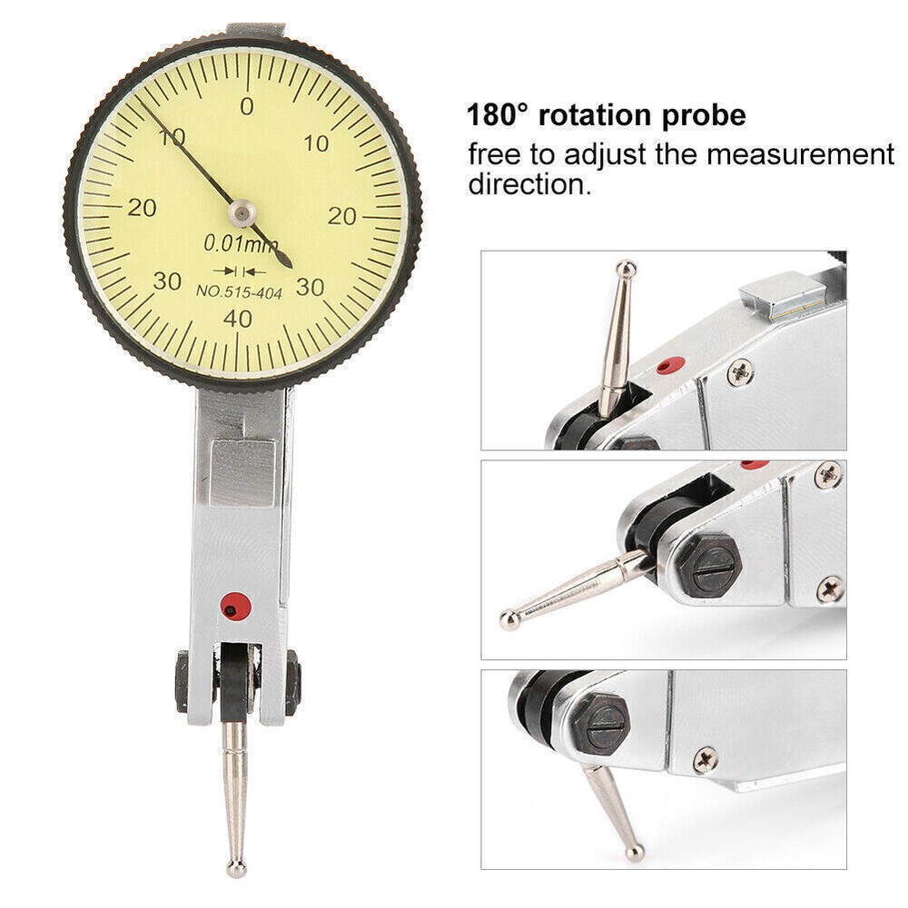 Features: Accurate and convenient measurement of narrow or concave objects The probe can be 180 ° rotation, free to adjust the measurement direction. Dovetail mount for mounting the indicator from the top, rear, or front. This dial test indicator is designed for measurement during machining, layout and inspection work. Rotate the knurled bezel 360 degrees to make the reading zero at any position. Accurate measurement, high sensitivity, rapid response. Specification: Shell Material: Aluminum Measuring Range: 0-0.8mm Resolution: 0.01mm Color: Shown as pictures Dial Diameter: Approx. 32mm/1.26in Package Weight: Approx. 108g/3.8oz Package list: 1 x Dial Test Indicator 2 x Dovetail Clamp 1 x Molded Case Note: 1. Due to the difference between monitors and light effects, the pictures may not reflect the actual color of the item. 2. Please allow slight measuring error due to manual measurement. 3. Please note that the new type and old type of this product will be sent randomly, and make sure you will not mind before ordering. All the items will be dispatched within one business day by Airmail after the payment is clear. Most times you will receive your order within 10-30 business days after we transfer your package to the delivery company. We cannot guarantee the delivery timeframe if the post office has any unexpected delays due to holiday,weather,customs, or other conditions. Some countries like Russia, Brazil, or some European countries may take up to 50 days or longer for delivery. We appreciate your patience if you haven't received items in 30 days(Russian customers may need more patience by reason of the local delivery system and/or customs). If you are concerned in any way, please feel free to contact us via ebay message instead of leaving negative/neutral feedback or opening a dispute . We will do our best to solve any problem(resend or refund any missingitem). Customs duty is obligation and liability of citizens in yourresponsible for any tax and custom duty incurred. Generally, thedelay or failure delivery is sometimes caused by the policy of different customs. Our listing price includes the value of goods,packaging cost,and export taxes,not including international duties. duties,taxes,and charges are not included in the item price or shipping fee. The duties are buyers' responsibility. Please check with your country's customs office determine what these additional costs will be prior to your purchase. All disputes arising from the duties will be submitted to ebay for solution. Any questions, pls. contact us via ebay message or email us. We will reply your message within 48 hours. If you do not receive our reply within 48 hours, pls. post a message again because sometimes our message system may block some emails. If you are satisfied with our service, pls. kindly leave us a positive feedback and give us the Detailed Seller Rating with all " 5 " in very area. Our aim is to provide Level Customer Service, your recognition will encourage us greatly and serve you better. We strive to keep all our customers satisfy. We will do our up most to exceed your expectations in customer service, communication and dispatching of your orders.