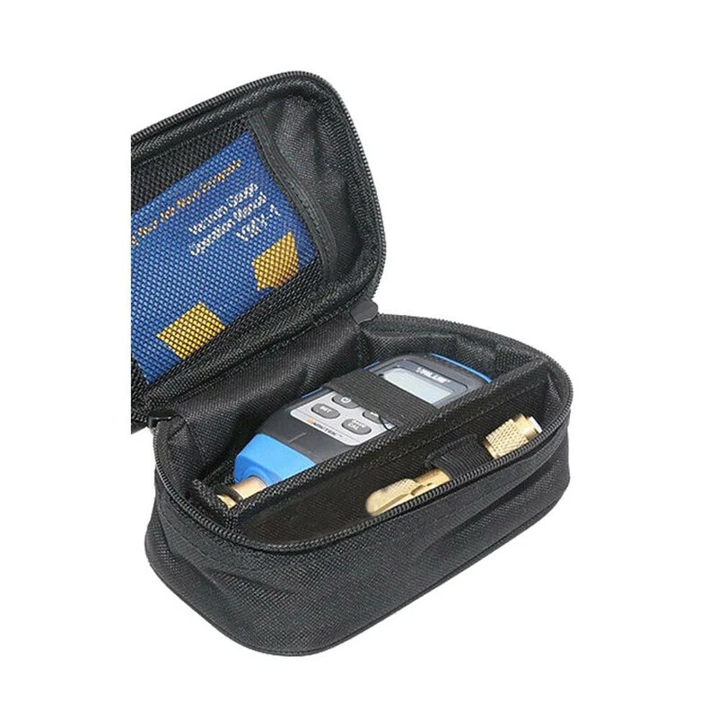 Product Description Features: The VMV-1 uses Pirani's professional vacuum sensors to accurately measure vacuum Can obtain the best information on dehumidification and foreign matter removal in the vacuum system Can obtain the state of the best refueling refrigerant Can monitor the vacuum system in real time Can identify the use of vacuum pumps Specifications: Max overload pressure: 72PSI/0.5Mpa Range: 0-10000Pa, 0-100.00mBar, 0-75.000mmHg, 0-75000Microns Resolution: 0.01(<10pa), 0.0001(<10mBar), 0.0001(<10mmHg), 1(<30000 Micron) Measurement accuracy: 2-100Pa (degree ±5%) Operating temperature: 0-50°C Battery life: 45 hours (3pcs AA battery) (not included) Units: Pa, mBar, mmHg, Microns Refresh rate: 0.5 seconds Interface: 1 7/16-20UNF Sensor: Pirani sensor Automatic shutdown: 10 minutes Backlight: 20 seconds Beep Horn: 90 dB, closes after 10 seconds Weight: 125g Application: Atmospheric environment Includes: 1 x Pressure Vacuum Gauge