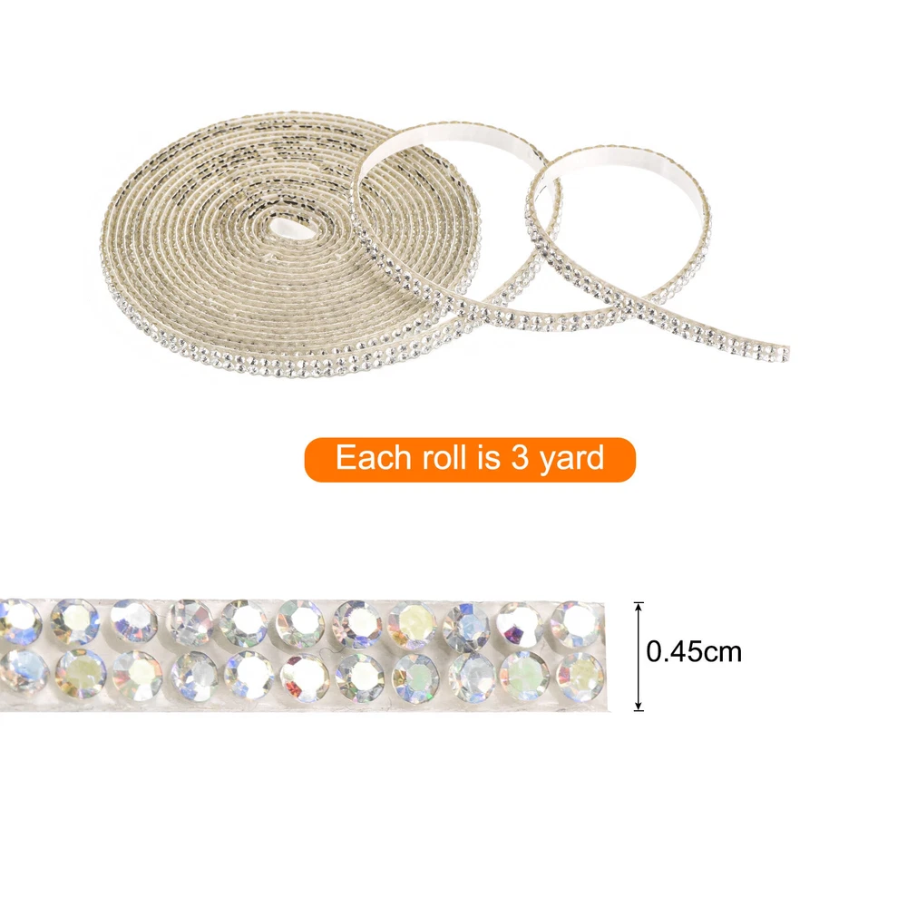 Document What is this?These self-adhesive rhinestone tapes can meet different decoration and needs in daily life, such as decorating the inside and outside of mobile phones, laptops, cups, even shoes, mobile phone chargers and any decoration you want, you can also decorate with craft lovers Share with friends or family.What will I get?Rhinestone ribbon size: 2 rows of diamonds (width 0.45 cm),each roll is 3 yard.Color: WhiteIn the package of: 1 Roll x self-adhesive rhinestone stripsAre there any advantages of the product?Self-adhesive rhinestone stickers use high-temperature melting technology, rhinestone materials, high temperature resistance, more stable adhesion, combined with rhinestones. Can be easily stuck on any smooth surface and won't fall off easily. Just use your imagination and DIY as you like to make your life more sparkling and exquisiteHow to use it?Steps of installation: 1. Cut these shiny crystal stickers into different shapes or lengths as needed; 2. Peel off the backing paper of the sticker and press it on your desired surfaceWhat should I notice?Note: Do not contact water or other liquids within 48 hours after pasting. 0.2 Inch Self Adhesive Rhinestone Strips 3 Yard for Crafts,White What is this? These self-adhesive rhinestone tapes can meet different decoration and needs in daily life, such as decorating the inside and outside of mobile phones, laptops, cups, even shoes, mobile phone chargers and any decoration you want, you can also decorate with craft lovers Share with friends or family. What will I get? Rhinestone ribbon size: 2 rows of diamonds (width 0.45 cm),each roll is 3 yard. Color: White In the package of: 1 Roll x self-adhesive rhinestone strips Are there any advantages of the product? Self-adhesive rhinestone stickers use high-temperature melting technology, rhinestone materials, high temperature resistance, more stable adhesion, combined with rhinestones. Can be easily stuck on any smooth surface and won't fall off easily. Just use your imagination and DIY as you like to make your life more sparkling and exquisite How to use it? Steps of installation: 1. Cut these shiny crystal stickers into different shapes or lengths as needed; 2. Peel off the backing paper of the sticker and press it on your desired surface What should I notice? Note: Do not contact water or other liquids within 48 hours after pasting. Hot Item Payment 1.We accept eBay payment . 2.Payment must be received within 7 business days of auction closing. Shipping 1.We ship to your eBay or Paypal address. Please make sure your eBay and Paypal address is correct before you pay. 2.Items will be shipped within 1-3 business day when we received payment. 3.Delivery time depends on destination and other factors. Description Policy 0.2 Inch Self Adhesive Rhinestone Strips 3 Yard for Crafts,White What is this? These self-adhesive rhinestone tapes can meet different decoration and needs in daily life, such as decorating the inside and outside of mobile phones, laptops, cups, even shoes, mobile phone chargers and any decoration you want, you can also decorate with craft lovers Share with friends or family. What will I get? Rhinestone ribbon size: 2 rows of diamonds (width 0.45 cm),each roll is 3 yard. Color: White In the package of: 1 Roll x self-adhesive rhinestone strips Are there any advantages of the product? Self-adhesive rhinestone stickers use high-temperature melting technology, rhinestone materials, high temperature resistance, more stable adhesion, combined with rhinestones. Can be easily stuck on any smooth surface and won't fall off easily. Just use your imagination and DIY as you like to make your life more sparkling and exquisite How to use it? Steps of installation: 1. Cut these shiny crystal stickers into different shapes or lengths as needed; 2. Peel off the backing paper of the sticker and press it on your desired surface What should I notice? Note: Do not contact water or other liquids within 48 hours after pasting. Hot Item Payment 1.We accept eBay payment . 2.Payment must be received within 7 business days of auction closing. Shipping 1.We ship to your eBay or Paypal address. Please make sure your eBay and Paypal address is correct before you pay. 2.Items will be shipped within 1-3 business day when we received payment. 3.Delivery time depends on destination and other factors.