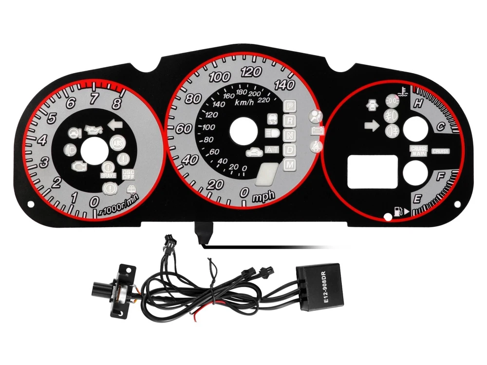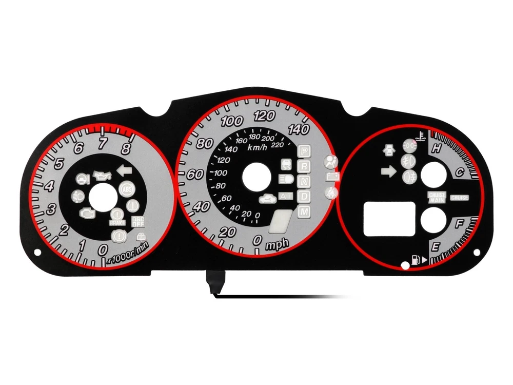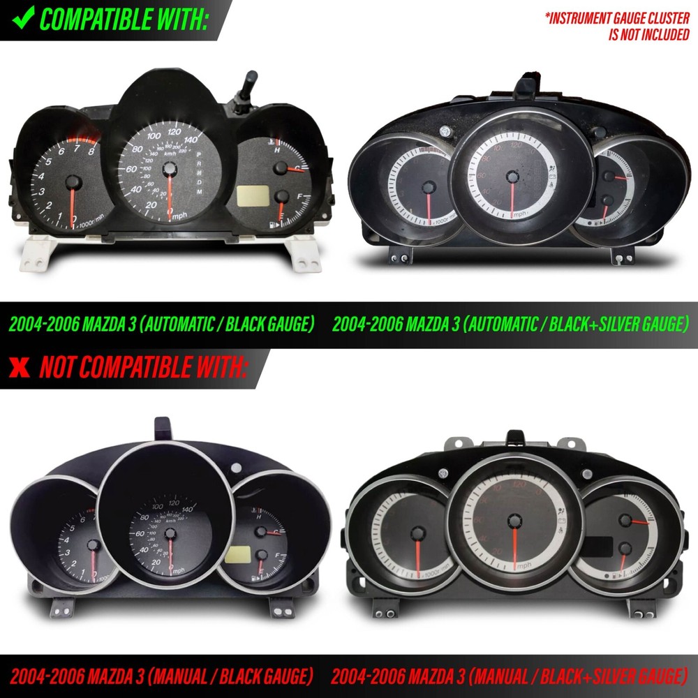 07-08 Mazda 3 RED Glow Gauge Black Overlay Instrument Cluster