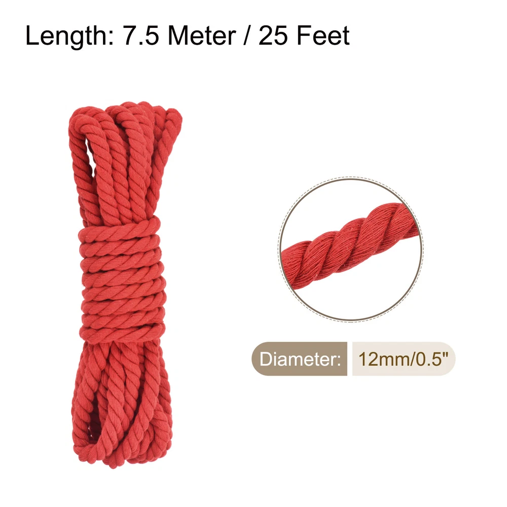 Document About the product:Macrame cord is widely used in macrame plant hangers, key chains, macrame coasters and other home decorations. It is also very suitable for holiday decorations such as Christmas, gift wrapping ropesMacrame cords is widely used in weaving lace, as drawstrings on clothes or hats, for party decorations, dream catchers, wall hangings, curtains with many tassels, gardening, gift wrapping, packaging materials, jewelry and handicraftsGood Choice for you:The cotton rope is made of pure natural cotton, which is soft, strong and easy to use, with flexibility and strength to make knotting easierNot easy to wear, pilling and fade, get creative with our rich selection of colorful ropesCan be used in a wide range of macrame applications from small to large, such as home decor, knitting and crochet projectsSpecification:Diameter: 12 mm ( 0.5 Inch )Length: 7.5 Meter / 25 FeetColor: RedMaterial: CottonIn the package of: 1 x cotton macrame cordEasy to install:You can cut it to any length you need and it's easy to untie and storeTips: There may be slight color difference due to different displays. Please use it at room temperature to avoid moisture damaging the cotton rope 0.5 Inch 25 Feet Macrame Cord, Cotton Cord Rope String - Red About the product: Macrame cord is widely used in macrame plant hangers, key chains, macrame coasters and other home decorations. It is also very suitable for holiday decorations such as Christmas, gift wrapping ropes Macrame cords is widely used in weaving lace, as drawstrings on clothes or hats, for party decorations, dream catchers, wall hangings, curtains with many tassels, gardening, gift wrapping, packaging materials, jewelry and handicrafts Good Choice for you: The cotton rope is made of pure natural cotton, which is soft, strong and easy to use, with flexibility and strength to make knotting easier Not easy to wear, pilling and fade, get creative with our rich selection of colorful ropes Can be used in a wide range of macrame applications from small to large, such as home decor, knitting and crochet projects Specification: Diameter: 12 mm ( 0.5 Inch ) Length: 7.5 Meter / 25 Feet Color: Red Material: Cotton In the package of: 1 x cotton macrame cord Easy to install: You can cut it to any length you need and it's easy to untie and store Tips: There may be slight color difference due to different displays. Please use it at room temperature to avoid moisture damaging the cotton rope Hot Item Payment 1.We accept eBay payment . 2.Payment must be received within 7 business days of auction closing. Shipping 1.We ship to your eBay or Paypal address. Please make sure your eBay and Paypal address is correct before you pay. 2.Items will be shipped within 1-3 business day when we received payment. 3.Delivery time depends on destination and other factors. Description Policy 0.5 Inch 25 Feet Macrame Cord, Cotton Cord Rope String - Red About the product: Macrame cord is widely used in macrame plant hangers, key chains, macrame coasters and other home decorations. It is also very suitable for holiday decorations such as Christmas, gift wrapping ropes Macrame cords is widely used in weaving lace, as drawstrings on clothes or hats, for party decorations, dream catchers, wall hangings, curtains with many tassels, gardening, gift wrapping, packaging materials, jewelry and handicrafts Good Choice for you: The cotton rope is made of pure natural cotton, which is soft, strong and easy to use, with flexibility and strength to make knotting easier Not easy to wear, pilling and fade, get creative with our rich selection of colorful ropes Can be used in a wide range of macrame applications from small to large, such as home decor, knitting and crochet projects Specification: Diameter: 12 mm ( 0.5 Inch ) Length: 7.5 Meter / 25 Feet Color: Red Material: Cotton In the package of: 1 x cotton macrame cord Easy to install: You can cut it to any length you need and it's easy to untie and store Tips: There may be slight color difference due to different displays. Please use it at room temperature to avoid moisture damaging the cotton rope Hot Item Payment 1.We accept eBay payment . 2.Payment must be received within 7 business days of auction closing. Shipping 1.We ship to your eBay or Paypal address. Please make sure your eBay and Paypal address is correct before you pay. 2.Items will be shipped within 1-3 business day when we received payment. 3.Delivery time depends on destination and other factors.