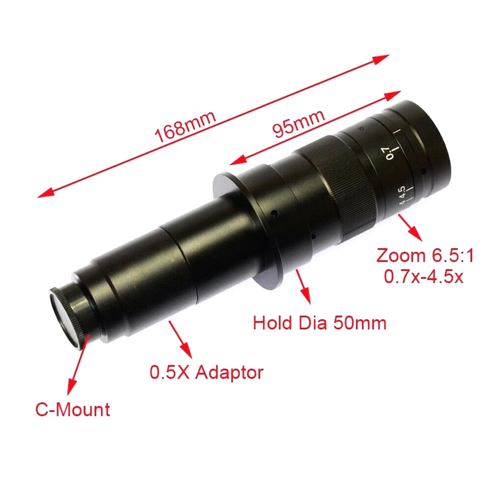 This c-mount lens provides 0.7 - 4.5X range zoom, work with most digital microscope cameras on the market with same mount, for used in inspection, soldering, or other industrial area. Note: For optimal results, it requires additional illumination (not included) Lens only, camera and extension ring has to be purchased separately Makre sure you know this lens before purchase Packing List (bulk pack): 1 x Lens Features: 0.7X - 4.5X range (about 10 - 180X magnification on monitor) 0.5X C-mount adapter, suitable for industrial digital microscope camera Working distance from 90mm to 200mm, Visual field is 2.3mm to 22mm It can be mounted on circular fluorescent lamp, LED ring lights, fiber optic cold light source Specifications: Type: Zoom C-mount Lens Adapter: 0.5X C-mount Magnification: 0.7X - 4.5X Zoom Ratios: 1:6.4 Working Distance: 90mm - 200mm Perspective: 2.3mm - 22mm Size (L x Dia): 168 x 50mm (6.61 x 1.97 inch) Weight: 505g (1.11 lb) Shipping Payment Returns About We offer FREE shipping to the USA, and charge small shipping fee for other countries. We do not provide pick-up service. We only ship to your eBay registered address. Make sure it is correct and deliverable. Handling time is 3 business day after payment cleared. Estimated delivery time: US/ CA 8-15 days, EU 10-30 days, Others 10-45 days. Time may be longer due to Customs clearance, peak seasons, or severe weather. We accept eBay approved payment methods. We never responsible for Customs duty or VAT. Return (in its unused condition) for refund is accepted within 60 days after item delivered. Contact us for RMA number. Confirmed faulty items/ DOA will be replaced or refunded. Accessories, or damaged by human error are not under warranty. Please contact us by email if you have problem with your items. QAREQU was founded by a team of forward-thinkers in 2017. The journey began with a simple yet powerful idea: to empower individuals and organizations with tools that unlock new realms of possibility. We start to craft products that blend functionality, reliability, and value-pricing. Our flagship offerings include HDMI microscope cameras, LCD controllers, and WiFi antennas. Your positive feedback and 5-star rating is appreciated if you are satisfied, it gives us encouragement and helps us do the best to you. copyright © qarequ.video