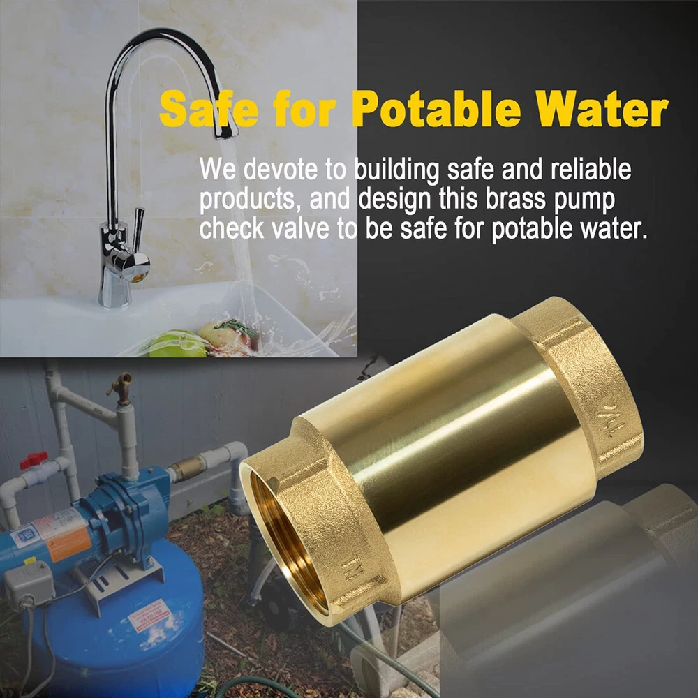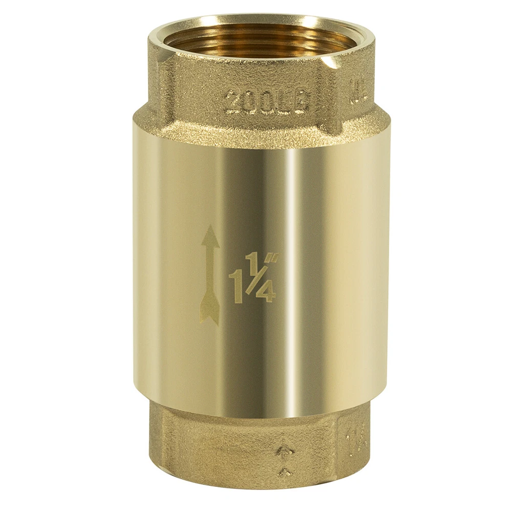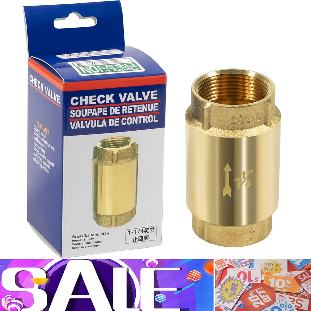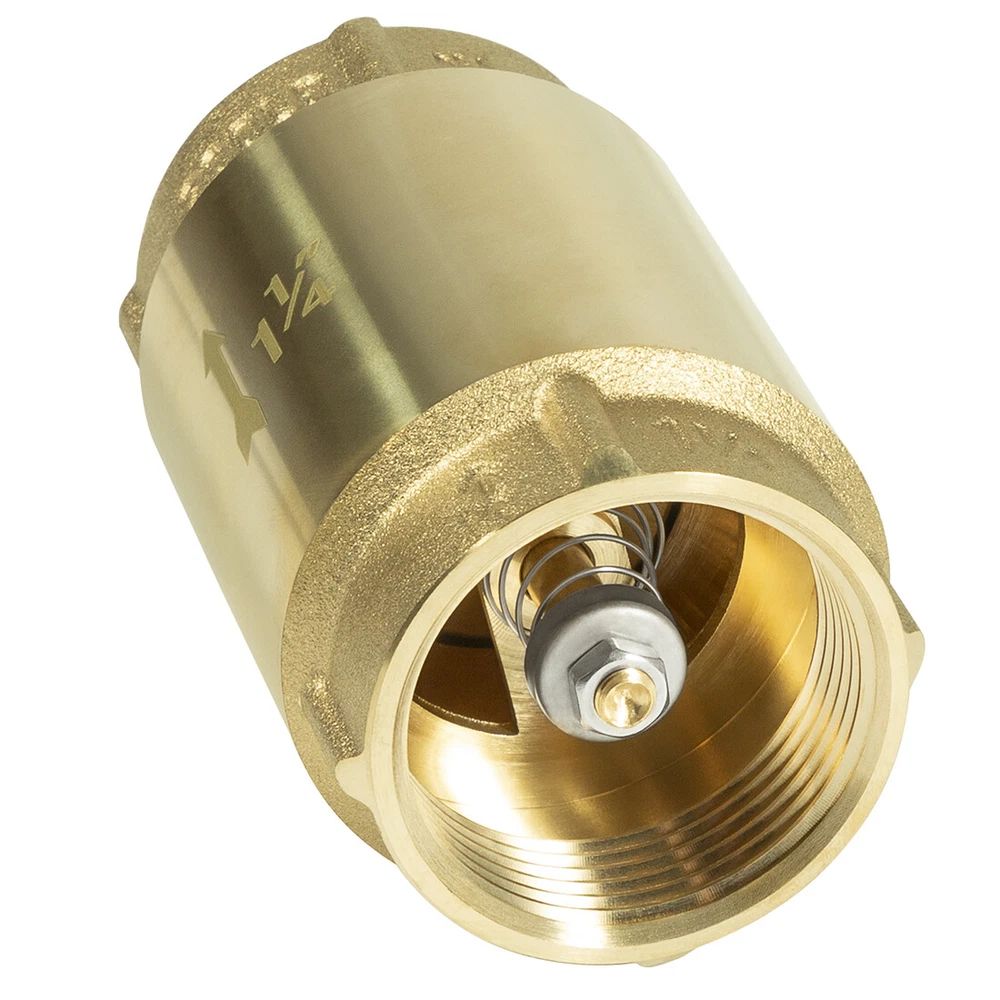 Fitment: Wide adaptability, this Check Valve works with ALL brands of pumps. Note the pipe size Features: 1) It’ unnecessary to run around searching for check valve applications. Our check valve is compatible with all bands of pumps and water systems. Both vertical and horizontal installations are available 2) 1-1/4" Check Valves effectively maintain system pressure by preventing reverse flow. Protect pumps and compressor equipment from damage caused by backflow / reverse flow. Check valves are very effective in preventing water hammer 3) Can be installed in both horizontally and vertically. Stainless Steel Spring and Fasteners. Spring-loaded poppet and O-ring assures reliable operation. Max Pressure: 200 PSI. Max Temperature: 180 F (80 C) 4) Abrasion resistant O-Ring is precision fitted to the poppet for a positive seal into a tapered self-cleaning valve seat. Spring check valve will help minimize effects of water hammer 5) Arrow on the valve this is important as the side from which the fluid enters and exits must be correct when installed Package included: Check Valve 1 1/4"