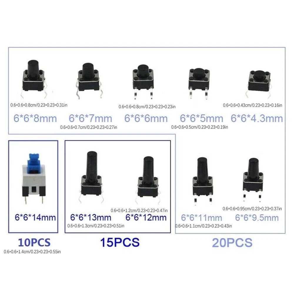 You may also like 433MHZ WIRELESS DOOR WINDOW GAP MAGNETIC CONTACT SENSOR FOR ALARM SYSTEM c 3.99 USD 4.99 USD 2 in 1 Snap Ring Pliers Plier Set Circlip Combination Retaining Clip Heavy Duty 5.59 USD 4.99 USD 252pcs Stainless steel Car Screws Kit For Axial SCX24 AXI90081 Deadbolt RC car 13.89 USD 2* Black Iron Humbucker Pickup Mounting Ring Frame Bridge Neck Flat Accessories 10.89 USD 1*Mount CNC Aluminium Alloy For Gopro Tripod Mount Adapter 1/4 Thread Adapter 10.89 USD 2* Gold Iron Humbucker Pickup Mounting Ring Frame Bridge Neck Flat Part 10.89 USD Product Description 180PCS 10 Type 6X6 Light Touch Switch Set Push Button Switch Kit AssortmentT2N9 Specifications: Set of mory tactile push button switch with 10 values of 180 Uni. Suitable for television, equipment, computers, intercoms, remote control, etc. High precision mechanism design provides pe, durable and practical operation Material: plastic Colour: black Package Content: 180 x Tactile Push Button Switch About Us Payment Shipping Returns Contact Us Welcome to our store! Our aim is to offer our clients items with high quality and fast delivery, also our price will be reasonable. We supply many products including video game, health & beauty, phone accessories, computers accessories, camera & camcorder,car accessories, games, toys & hobbies, jewelry, antique & craftwork. Excellent customer service and a reliable credit standing is our tenet. We accept all verified payments from ebay. Orders will be shipped after receiving cleared payment. We ship most of our orders within 24 hours, and may up to 48 hours. If you want faster shipping way. Please contact us before making payment. Sometimes due to problems with our transportation company system, your shipping information may be delayed to update. We recommend that you try again after 3-4 days. If you still haven't checked the shipping information, you can contact us by ebay message. Always believe we can figure things out with communication, if it comes to return, the pacakge must be intact and the same as you receive. If you have any questions, please feel free to email our service specialists 24 Hours a Day, 7 Days a Week. We will reply you ASAP. Return/refund is accepted within 30 days after the buyer receives the item. NO exchange will be accepted after 30 days from the date when the item is received. Please contact us first before returning your product!!! If you have any questions, our Customer Service staffs welcome you to email us. We strive to answer all questions and resolve any problems as quickly as possible. We care about our valued customers, and will always try to help you. So if you have any problems, You can contact us 7*24, we will reply at the first time. About Us Welcome to our store! Our aim is to offer our clients items with high quality and fast delivery, also our price will be reasonable. We supply many products including video game, health & beauty, phone accessories, computers accessories, camera & camcorder,car accessories, games, toys & hobbies, jewelry, antique & craftwork. Excellent customer service and a reliable credit standing is our tenet. Payment We accept all verified payments from ebay. Orders will be shipped after receiving cleared payment. Shipping We ship most of our orders within 24 hours, and may up to 48 hours. If you want faster shipping way. Please contact us before making payment. Sometimes due to problems with our transportation company system, your shipping information may be delayed to update. We recommend that you try again after 3-4 days. If you still haven't checked the shipping information, you can contact us by ebay message. Returns Always believe we can figure things out with communication, if it comes to return, the pacakge must be intact and the same as you receive. If you have any questions, please feel free to email our service specialists 24 Hours a Day, 7 Days a Week. We will reply you ASAP. Return/refund is accepted within 30 days after the buyer receives the item. NO exchange will be accepted after 30 days from the date when the item is received. Please contact us first before returning your product!!! Contact Us If you have any questions, our Customer Service staffs welcome you to email us. We strive to answer all questions and resolve any problems as quickly as possible. We care about our valued customers, and will always try to help you. So if you have any problems, You can contact us 7*24, we will reply at the first time. Lifting Screw Motorcycle Aluminum Alloy Motorbike Sports Car Frame Repair Part 9.59 USD Watch Repair Chronograph Part Accessories DIY For Ronda 1069 Quartz Movement B 22.59 USD 52MM 0.45x Wide Angle Lens + Macro Lens for 52mm DSLR and digital camera 15.89 USD Vintage 22mm 316L Stainless Steel Engraved Watch Straps Bands Buckle Parts E 18.89 USD 144/430Mhz Frequency Radio Antenna Dual Band V/UHF for Mobile/Car Ham Walkies D 14.89 USD EZP2019 USB High Speed Programmer Support 24 25 93 EEPROM 25 Flash Bios Chips zz 24.89 USD Silver Mini Aluminum Alloy M2 SSD Disk Case Adapter External Enclosure Box ll 17.29 USD New NanoVNA-H4 4" LCD 50KHz~1.5GHz VNA HF VHF UHF UV Vector Network Analyzer j 98.89 USD LED Cover Assorted Color 112 Pcs For 104 Mechanical Keyboard-9.9mm Limited Use 11.89 USD HDMI KVM Fiber Extender over SC Fiber Optical Cable to 20Km HDMI KVM Extender 86.89 USD Cell Phone Mount Holder GPS Motorcycle MTB Bike Bicycle Bracket W/ Rubber Band 11.89 USD Camera Battery Plastic Cover Door Cap Case Lid Replacement For Nikon D850 12.89 USD New Glass Cutter Pliers Ceramic Mosaic Nippers Round Nose Cut Cutting Wheel Tool 20.89 USD 2-Hand 4-Jewel Quartz Watch Movement With Stem Replacement For Ronda 1062 D 18.59 USD 30X 60X 90X Portable Slide LED Light Jewelry Magnifying Glass Magnifier Loupe' 11.89 USD Screwdriver Tool Release Lock Oscillating Weight For 6601 Citizen Watch Repair 14.89 USD 1:72 Scale German Tiger King Heavy Tank Alloy Model with Display Base Souvenir 33.89 USD Black 50KN Rescue Figure 8 