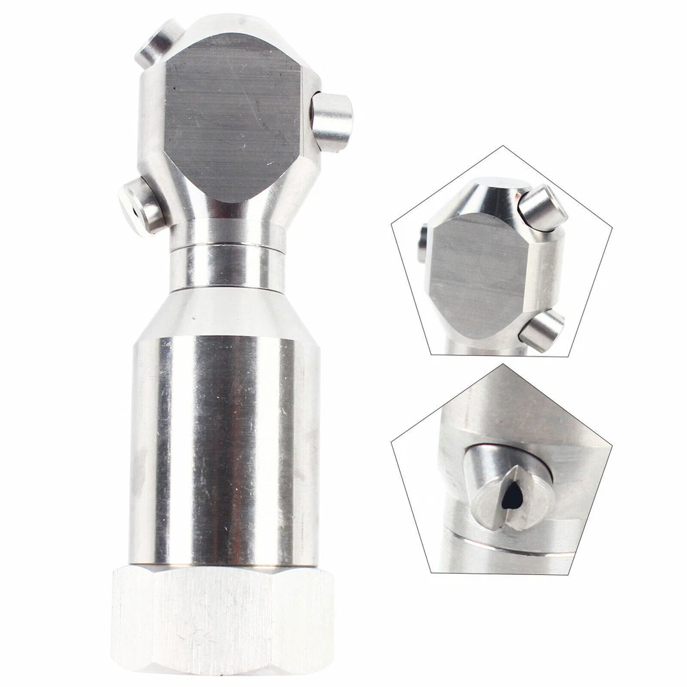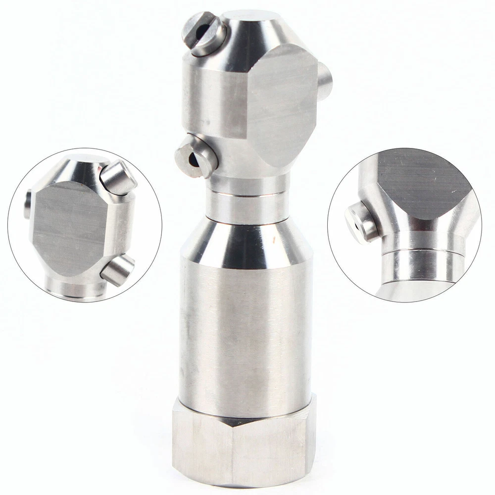 1" Continuous Rotating Tank Washing Spray Nozzle Full Angle Pipe Cleaning Nozzle Description 18250 continuous rotary cleaning nozzle is driven by the reaction force of liquid to rotate without external motor or gear.Three powerful fan-shaped nozzles are installed on the rotary nozzle driven by the flushing fluid flow. These nozzles are precisely positioned so that all internal surfaces are completely within the scope of the cleaning track, effectively cleaning the internal surface of the small tank or barrel. Specification: Material:stainless steel 304 Colour: sliver Size:φ30*123mm Type:1” internal thread Application fields: container / pipeline cleaning, pure water / steel bucket cleaning, food processing tank cleaning, pharmaceutical processing tank cleaning. Features: 1.High impact cleaning of portable containers and buckets with a diameter of 8 feet (2.4 meters) 2. The cleaning solution can pass through once or contain small particles. 3. When there is no need to control the nozzle, the liquid pressure should be less than 5 bar 4. High temperature resistance and the maximum temperature is 177 ℃. Package Included: 1x Washing Nozzle Note: -The washer can be installed in vertical or horizontal position. -Please allow 1-3MM differs due to manual measurement. -Due to the different display and different light, the picture may not reflect the actual color of the item. Thanks for your understanding. Payment Delivery details Terms of sales About us Contact us Payment We accept ebay payment 。 Fees such as import duties, taxes are not included in the item price or shipping costs. These charges are the buyer's responsibility. Delivery details Shipping: 2-9 working days to: USA Terms of sales We maintain high standards of excellence and strive for hundred percent customer satisfaction. Feedback is very important to us. We hope that you contact us immediately before you give neutral or negative feedback, so that we can address your concerns. It is impossible to address issues if we do not know about them! About us Your satis faction is our ultimate goal. We work hard to earn your trust and future business. Our certified technicians have tested each item before shipping. The unit comes with 1 year limited warranty on all manufacturing defects. a) If you receive a defective item, you may return it or ask for a discount. Please contact us within 14 days after you receive the package. b) What you returned must be intact and in its original packaging as re? u. Customer is responsible for shipping costs of the returned item. c) We will cover the cost of shipping back t with the shipping rate indicated in the registration page. We will send you a new unit or refund the full payment you paid. Thank you. Contact us Business Hour Business Hour: Monday To Friday: 8:30 AM to 5:00 PM (Beijing China time) Due to time zones, our reply to your questions may not be immediately. But within above working time, we will reply your email within 24 hours. If it's non-workdays, please kindly be patient and wait till Monday. Please contact us with ebay message. Please feel free to contact us if you have any questions. Monday To Friday: 8:30 AM to 5:00 PM (Beijing China time) Due to time zones, our reply to your questions may not be immediately. But within above working time, we will reply your email within 24 hours. If it's non-workdays, please kindly be patient and wait till Monday. Please contact us with ebay message. Please feel free to contact us if you have any questions.