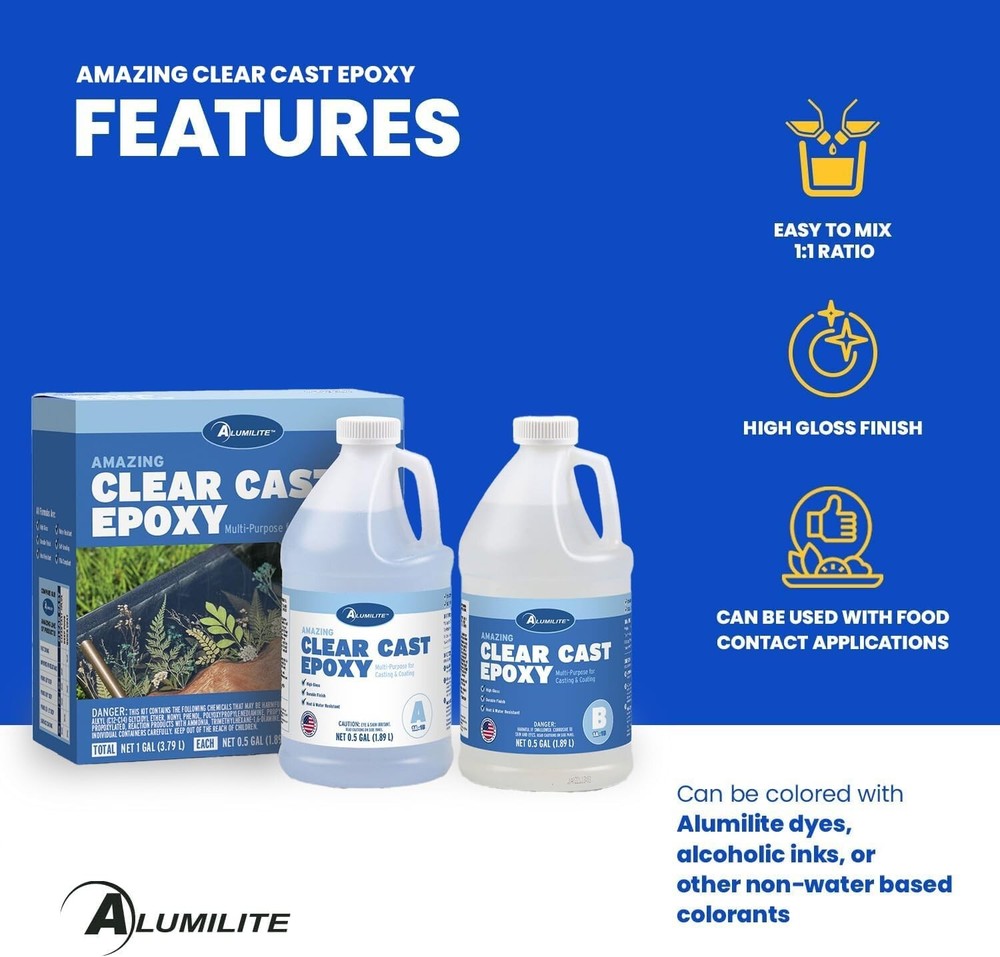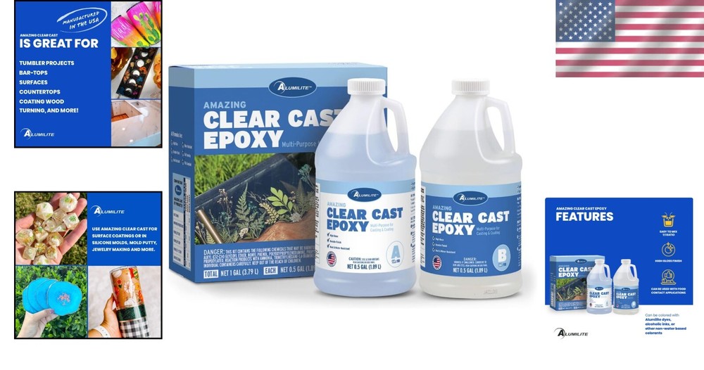 1 Gal Amazing Clear Cast Epoxy Resin - Easy Mixing, Professional Results ‹ › ‹ › ‹ › ‹ › ‹ › ‹ › ‹ › 1 Gal Amazing Clear Cast Epoxy Resin Easy Mixing, Professional Results Home Renovation Essential Elevate your home renovation projects with our Amazing Clear Cast epoxy resin kit. Transform furniture, bar, or tabletops into brand-new pieces with a crystal clear finish. High-ranking epoxy resin, perfect for casting or as a clear coat. Crafting Made Easy Unleash your DIY spirit with our versatile epoxy resin. Pour a protective coating or cast unique items like keychains. Allow for deep pours of up to 3/8 inch thick, catering to both beginners and veterans. Simple Mixing Process Crystal clear epoxy resin features a 1:1 ratio for effortless mixing. User-friendly formula guarantees a smooth blending process. Colorful Creations Add a splash of color to your art with our Amazing Clear Cast. Compatible with dyes, Polycolor Powders, and other non-water-based colorants. Transform basic crafts into vibrant masterpieces. Professional Finish Achieve a stunning high-gloss finish for your creations. Cures to a rigid, durable, and impact-resistant plastic. Ensures your projects exude a professional and long-lasting appearance. Why Choose Amazing Clear Cast Epoxy Resin? If you're looking to elevate your crafting or home renovation projects, look no further. Our Amazing Clear Cast Epoxy Resin combines unmatched clarity with durability, providing professional results for every DIY venture. From deep pours to colorful creations, this versatile product ensures your visions come to life with ease and elegance. Transform your creations and indulge your creative side—order your Amazing Clear Cast Epoxy Resin today! Shipping Free & Fast Shipping - We offer free shipping to most of the USA with a normal delivery time of 3-7 days. However, due to the current situation, additional delivery time (up to 3 weeks) may be required for some items. Alternative Carriers - We may use alternative carriers (e.g. USPS, FedEx, UPS, etc.) to ensure your package arrives safely and on time. Due to the use of multiple carriers, we are unable to provide a tracking number automatically. Handling Time - Orders are processed and shipped within 1-2 business days of receiving cleared payment. Shipping Restrictions - Shipping to Alaska, Hawaii, Puerto Rico, Guam, and other US territories may incur shipping charges or delivery restrictions. Please contact us before ordering, or your order can be refunded/cancelled. State Restrictions - There may be restrictions based on your state of purchase. For example, certain items may not be shipped to California due to state regulations. Contact for Tracking Updates - If you require tracking updates or have any concerns about the delivery of your order, please feel free to contact us, and we will be happy to assist you. Return 30-Day Hassle-Free Returns - We want you to be completely satisfied with your purchase. If you are not, you can return the item within 30 days of receiving it for a full refund or exchange. Easy Return Process - To start a return, simply contact us and we will provide you with a prepaid return shipping label and detailed instructions. Restocking Fee - There are no restocking fees for returns. However, the buyer is responsible for return shipping costs if the return is not due to a seller's error. Refund Processing Time - Refunds will be processed within 5 business days of receiving the returned item in its condition. Payment We accept all major credit cards, PayPal, and Apple Pay for your convenience. Your payment information is secure and encrypted to ensure a safe and seamless transaction. Please complete your payment within 3 days of purchase to avoid any delays in shipping. Feedback Your feedback is extremely important to us. We strive to provide the best products and customer service possible. If you are satisfied with your purchase, please take a moment to leave us a positive review. If you have any concerns or issues with your order, please contact us before leaving negative feedback. We are committed to resolving any problems and ensuring your satisfaction. Contact Us If you have any questions or concerns, please feel free to out to our customer support team. You can contact us through the eBay messaging system. We are available Monday to Friday, 9:00 am to 5:00 pm EST, and we will do our best to respond to your inquiry within 24 hours. Buy it now and enjoy a pleasant shopping experience! Model: Epoxy Resin Kit MPN: Epoxy_Resin_Kit Unit Quantity: 1 Color: Clear Unit Type: gal
