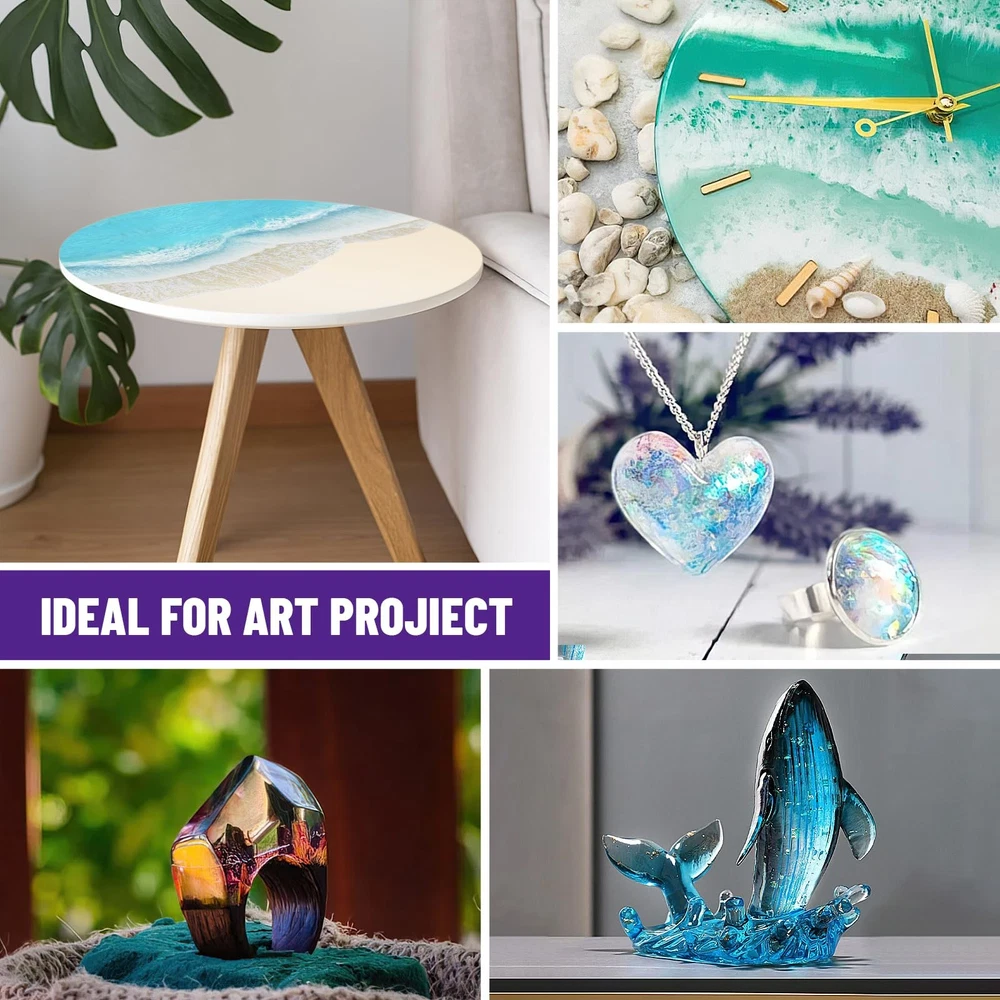 About : We have been in the epoxy resin for 15 years, and have professional research team and advanced production equipment. We are constantly testing and upgrading to improve the quality of our epoxy glue, providing space to inspire your artistry. Why Choose Us: √ Polyurethane clear gloss, transparent material more realistic. √ No bubbles, no imperfections, the finished hand casting enjoys the exquisite art. √ High hardness, non yellowing, make the art project translucent as new √ Wide application, you can DIY earrings, keychain, ornament, ashtray, coaster, ring, bracelet, woodwork, etc. The epoxy resin kit includes the basic tools to use: gloves, measuring cup, stirring stick, and you can follow the instructions step by step. Tips: Please take precautions during operation to avoid direct of glue with skin or eyes, if accidentally stuck, the first time to wipe off most of the glue with paper towel, and then use detergent/alcohol/hand sanitizer/soap etc. to wash repeatedly. [Crystal Clear Resin]: Professional formula makes our epoxy resin reach food safe grade. After curing, the surface will be highly glossy and bring a more vivid lasting effect. It resists heat, scratches and yellowing, ideal for protecting your craft article. [Bubble Free & Self Leveling]: Defoaming agent is added to release the residual air bubbles. The air bubbles of liquid resin will disappear within 2 hours, and the poured epoxy glue will be leveled automatically. [Fast Curing]: 1 hour operating time, 8 hours of molding and 24 hours of full curing at room temperature. Friendly to both beginners and professionals, makes it easy to create amazing art project. [Easy Mix 1:1 Ratio]: The epoxy resin kit contains the basic applicable tools and you can work according to the instructions. Just pour the clear resin A and fiberglass resin hardener B at 1:1 ratio, stir the mixture for at least 3 minutes then pour it onto the molds. [Wide Applications]: Ideal for various DIY project: craft, coaster, wooden furniture, flower preservation, candle or soap molds, Jewelry making (earring, ring, necklace), etc.