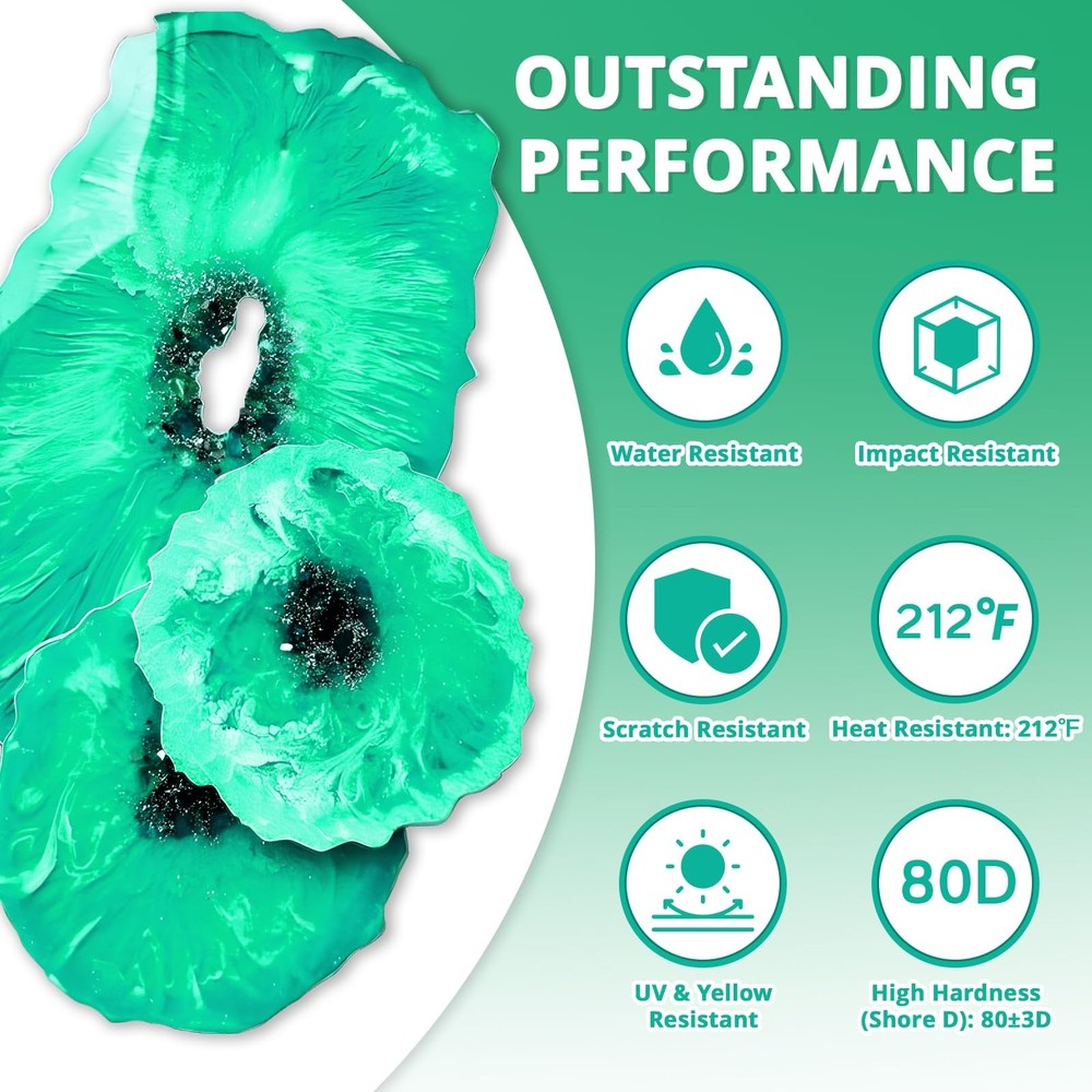 If you're looking for high-quality, clear, bubble-free epoxy resin, then look no further. ๐๐๐๐ ๐๐๐๐๐ crystal clear epoxy resin kit is perfect for all your DIY & craft Ideas needs! Tips For Use - Warm the resin before use it, this not only helps to disperse the micro-bubbles, but also helps with the curing process! Flower Preservation Tips 1. Let it sit in the resin for a few minutes before putting it in the mould. 2. before putting the flower into the resin (1. dry the flower 2. seal the flower) Multi-Purpose, Suitable For Everyone Great for DIY resin art, tabletop, moulds, wood, casting, crystal clear coating, casting, coasters, countertops, crafts, jewellery making, painting, flower preservation and the others. Perfect Gift For Diy Lovers !!!!! Use our clear epoxy to provide a long-lasting, waterproof, smooth and mirror-like finish for DIY projects. You can easily cast a variety of coasters, table tops, jewellery, ornaments, paint artwork and objects of all shapes and sizes. This crystal clear epoxy makes a great gift for any crafter and is perfect for creating unforgettable memories with your loved ones. ใ๐๐ฎ๐๐๐ฅ๐-๐ ๐ซ๐๐ & ๐๐๐ฅ๐-๐๐๐ฏ๐๐ฅ๐ข๐ง๐ ๐๐ซ๐ข๐ฅ๐ฅ๐ข๐๐ง๐๐ใ: Epoxy Resin. With our own R&D and manufacturing team - the innovative self-leveling technology automatically releases residual air bubbles and unevenness to ensure a perfectly smooth surface, and you will have a crystal clear, glassy smooth, bubble-free surface. Widely used in DIY crafts, jewelry, candlesticks, lamps, table tops, coatings, trays, bar tops, castings, woodwork, ornaments, coasters, and other resin artworks ใEpoxy Resin ๐๐ซ๐ฒ๐ฌ๐ญ๐๐ฅ ๐๐ฅ๐๐๐ซ ๐๐ข๐ ๐ก ๐๐ฅ๐จ๐ฌ๐ฌ ๐ ๐ข๐ง๐ข๐ฌ๐กใ: We have added UV stabilizers + HALS (Hindered Amine Light Stabilizers), which can effectively resist UV and yellowing to ensure that the artwork has an ultra-clear, beautiful, high gloss appearance, while it is scratch and impact resistant, water and moisture resistant, and easy to clean, so that your artwork will be color stable and vibrant for a long period, and will shine like never before ใ๐๐๐ฌ๐ฒ ๐๐จ ๐๐ฉ๐๐ซ๐๐ญ๐ใ: Ensure the epoxy resin and hardener are mixed thoroughly at a 1:1 volume ratio. Work at room temperature 75-85ยฐF for up to 30-40 minutes with a 24-hour cure time to create your best artwork!!! ๐๐๐๐ ๐๐๐๐๐ resin epoxy with a heat resistance of up to 212ยฐF and a hardness of up to 83D prevents scratches and protects your artwork, making it as hard as diamond ใ๐๐๐๐ ๐๐จ ๐๐ฌ๐ใ: FOOD SAFE Epoxy Resin - Made from premium raw materials and a safe, non-toxic formula that is No VOCs, solvent-free, BPA-free, non-flammable, non-irritating, and odorless, ensuring that the resin crafts meet the highest safety and performance standards, are safe for food contact and safe for indoor and outdoor use. Beginners can conduct a small amount of testing before work, which is very user-friendly for both beginners and professionals ใ๐๐ฎ๐ฉ๐๐ซ ๐๐๐ฅ๐ฎ๐ ๐๐ฉ๐จ๐ฑ๐ฒ ๐๐๐ฌ๐ข๐ง ๐๐ข๐ญใ: Our ๐๐๐๐ ๐๐๐๐๐ Epoxy Resin Kits Included: 1x 0.5 gallon crystal clear epoxy resin, 1x 0.5 gallon crystal clear hardener, 5x gloves, 5x wooden stirring sticks, 2x 250 ml measuring cups, 2x plastic stirring sticks, 2x plastic scrapers, 2x pumps, 1x user guide. The perfect mix of everything needed to help you easily make epoxy resin Artcraft, experience the fun of resin handmade DIY making, and hurry up to create your unique artwork ใ๐๐ข๐ฉ ๐ ๐จ๐ซ ๐๐ฅ๐๐๐ง๐ข๐ง๐ ๐๐๐๐ฌ๐ฎ๐ซ๐ข๐ง๐ ๐๐ฎ๐ฉใ: The cup must be cleaned immediately after use, otherwise the cup will not be cleaned thoroughly. Use a solvent like isopropyl alcohol (rubbing alcohol) or acetone to clean it, for stubborn spots, pour a small amount of alcohol into the cup and let it sit for a few minutes before scrubbing, use a stiff-bristled brush / sponge / cloth to wash the inside of the cup. After scrubbing, rinse the cup thoroughly with warm water / warm soapy water to remove any remaining solvent and resin residues