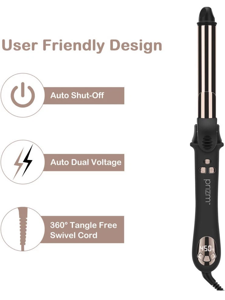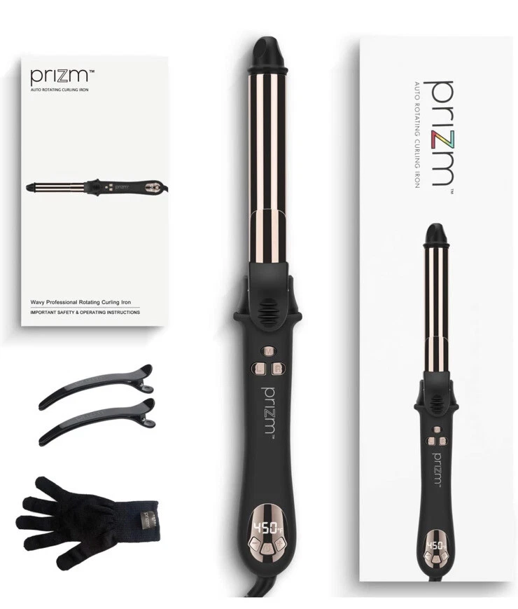 Prizm 1 Inch Wavy Professional Rotating Curling Iron, Nano Titanium Auto Spin Curling Wand Hair Curler with 11 Adjustable Temps 250°F to 450°F, Anti-Scald & Dual Voltage Used, tested still in good condition. Item: L11