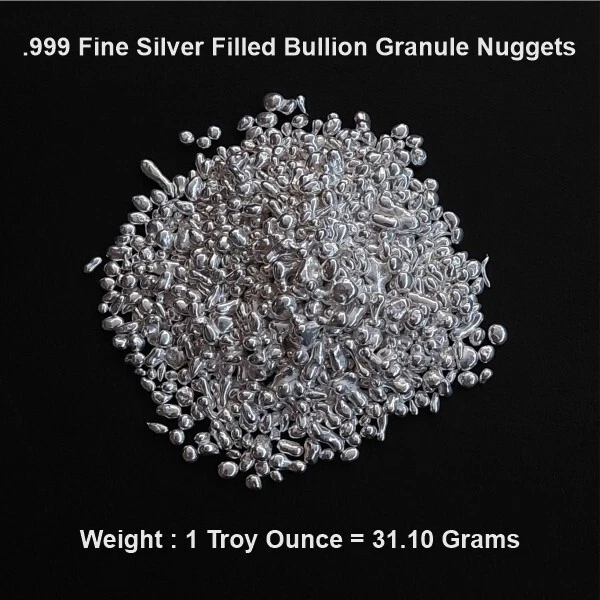 1 Kilo Fine 999 Silver Filled Granule Refined Jewelry Recovery 1000 g USA STOCK READY TO SHIP! This Jewlry Grade Silver Filled Mixture is Refined and Ready for Use in Whatever Mysteriously Beautiful Masterpiece You Decide to Dream Of! Origin: USA Solid/Hollow : Solid Approximate Weight : 1000 Grams / 1 Kilo Measurement : length : Assorted Granule's Condition : 100% Brand New These Silver filled granules are sourced in the USA from small miners, prospectors, and other precious metal dealers. This Silver is then layered over a Bullion / Jewelry grade base metal that has been perfected by our own secret mixture that perfectly bonds to the silver, giving it a beautiful feel, look and weight of Solid .999 Fine Silver Bullion. Disclaimer: These granules are not Solid Silver Granules. If you want Solid Granules, please go to my eBay store and search for .999 Fine Silver Nuggets. Return Policy: All Returns Are Accepted Provided Buyer Pays Return Shipping. There Will Be A Restocking Fee For All Items Returned For Any Reason Except For Items That Have Arrived Damaged. If Your Item Has Arrived Damaged, Then You Must Provide Pictures Of The Damage And A Replacement Will Be Provided (If In Stock) Or A Refund If Desired.