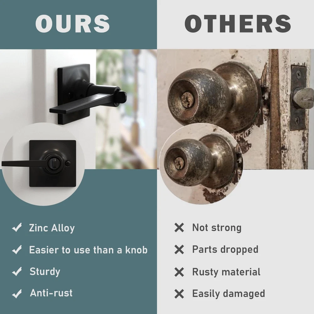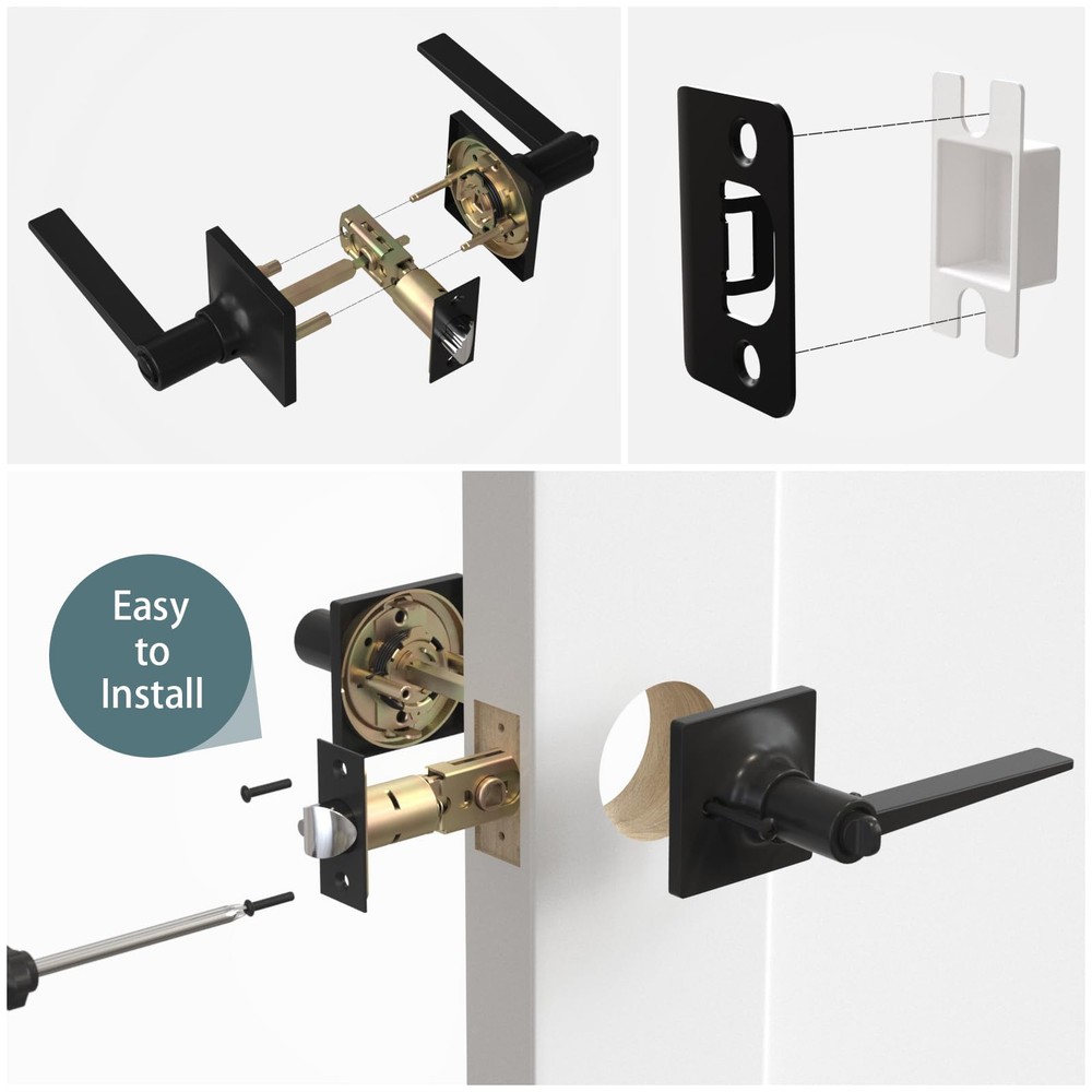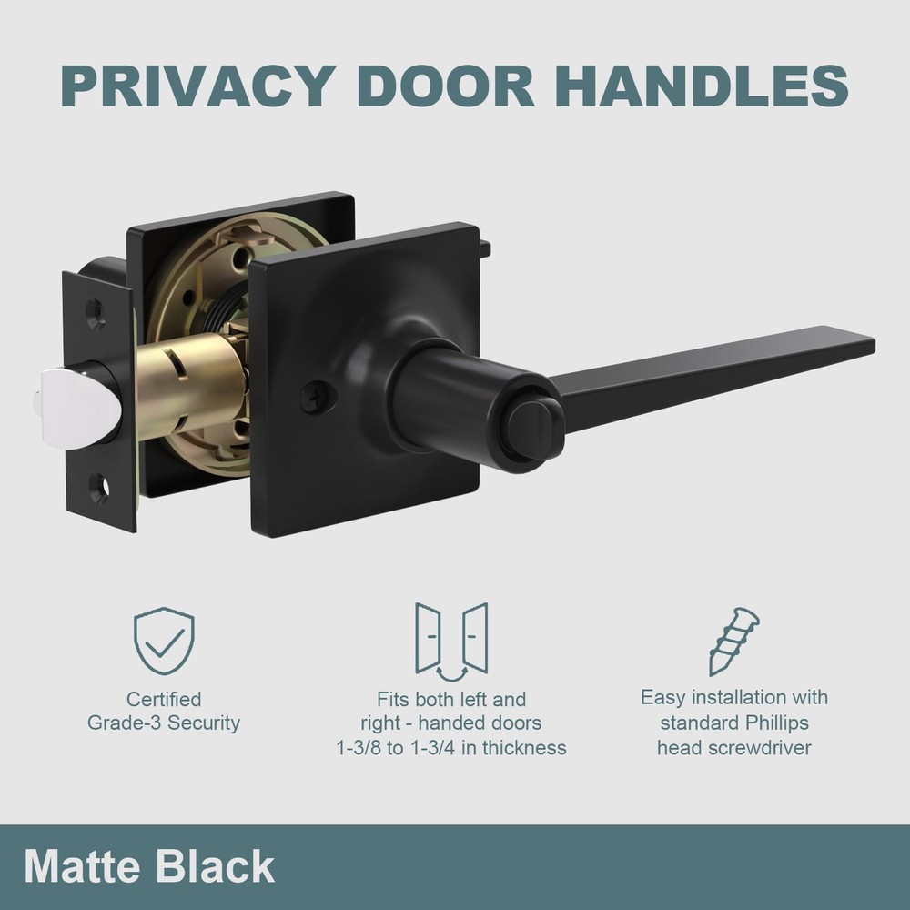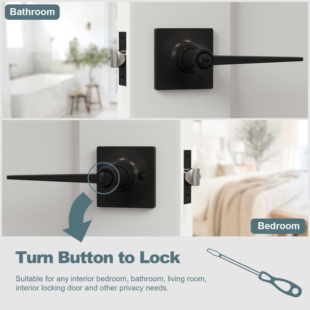 PRIVACY FUNCTION DOOR HANDLES INTERIOR: Equipped with a keyless button lock, these door locks for bedrooms protect the privacy of spaces like bedrooms and bathrooms. In emergencies, they can be opened from the outside using a flat tool, ensuring safety EASY-TO-INSTALL DOOR HANDLE SET: Includes clear instructions and an installation video for quick setup. Features an adjustable latch for backsets of 2-3/8 in (60 mm) or 2-3/4 in (70 mm) and fits door thicknesses from 1-3/8 in (35 mm) to 1-3/4 in (45 mm) VERSATILE APPLICATION DOOR KNOB WITH LOCK: Ideal for left-handed or right-handed doors in bedrooms, bathrooms, living rooms, or offices. The modern design complements various interior styles, meeting both functional and aesthetic needs DURABLE AND STURDY CONSTRUCTION: Crafted from premium zinc alloy with a heavy-duty design, these privacy door handle offer Grade 3 certification for long-lasting durability and reliable performance AFTER-SALES SUPPORT: Backed by a 24-month warranty, our customer service team is ready to assist with any issues related to installation or the product itself, ensuring a worry-free purchase experience