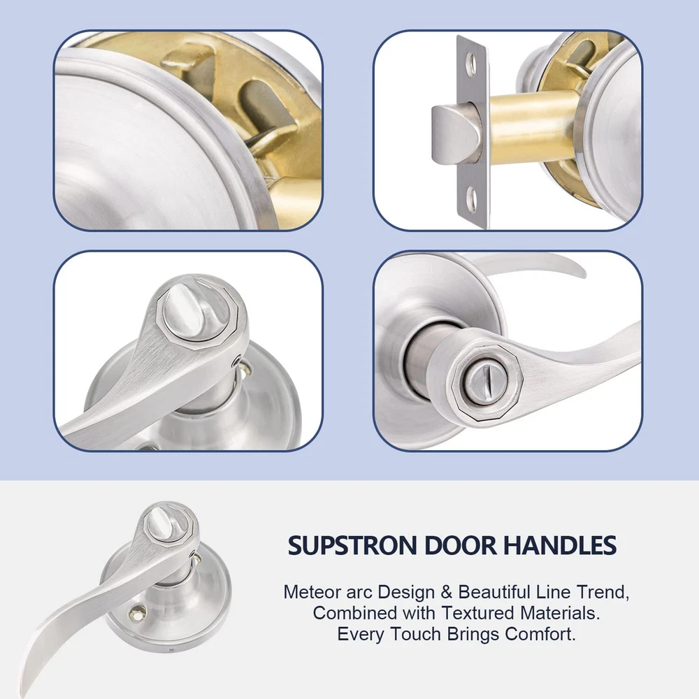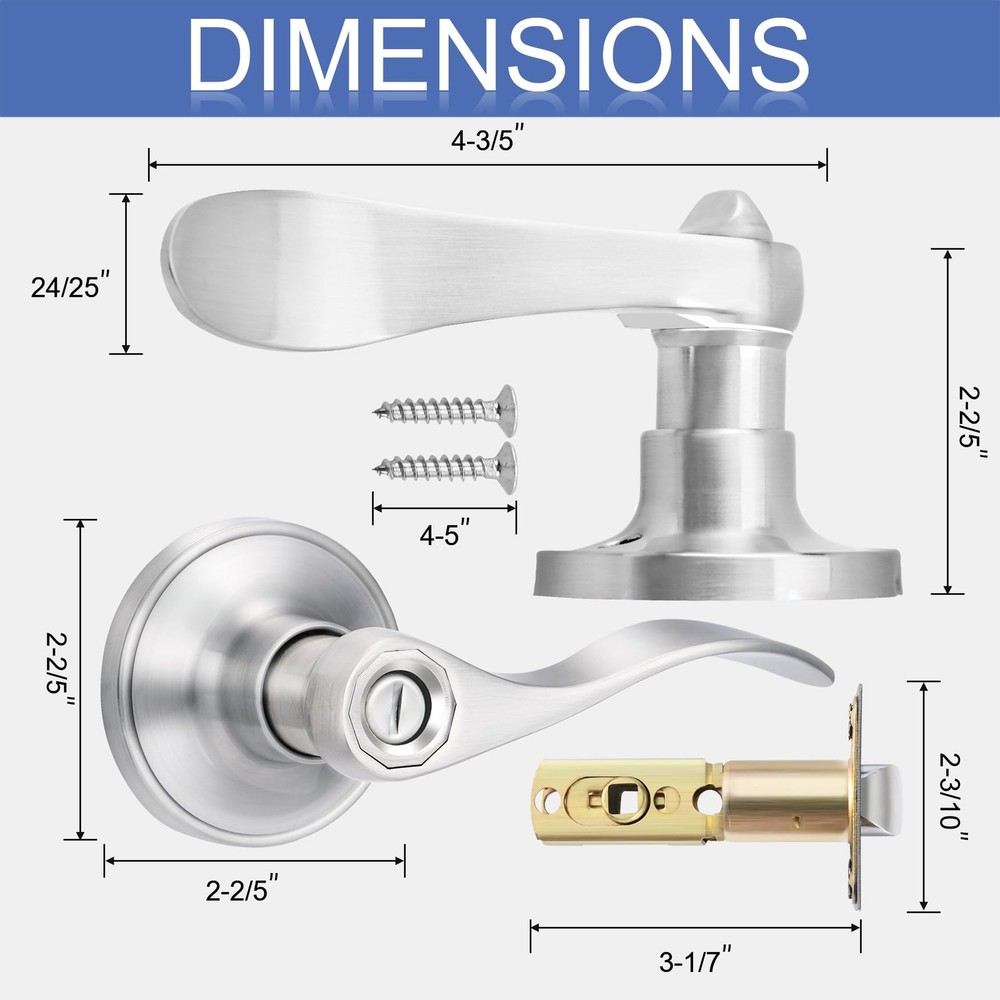 Ⅰ. Note: "Before making your purchase, ensure accurate measurements of your door's dimensions to a perfect fit. For any inquiries or concerns, our dedicated customer support team is at your service. Expect a swift response within 24 hours, ensuring a seamless shopping experience. Ⅱ. 【Privacy Door Locks 1 Pack】Elevate and style with our privacy door locks. Perfect for entryways, exteriors, bedrooms, and offices, this double-sided lock offers dual convenience, allowing locking from both inside and outside. Safeguard your space without compromising on accessibility. Ⅲ. 【Universal Size】 Our privacy door locks feature adjustable latches, accommodating door thicknesses ranging from 1-3/8" to 1-3/4" (34-45mm). With options for 60mm (2-3/8") or 70mm (2-3/4") latches, it ensures compatibility with a wide range of doors. Plus, the reversible handles cater to both left and right-handed door orientations for added convenience. Ⅳ. 【Wavy Style Traditional Design】Add a touch of elegance to your interiors with our Victoria wavy style door handles. Designed for interior doors and closets, these handles boast a unique swing of up to 75°, enhancing both functionality and aesthetics. Ⅴ. 【High Quality & Corrosion Resistance】Crafted from premium alloy and brass components, our interior door lever guarantees durability and resistance to rust, even in humid conditions. It has undergone rigorous testing, including a hydrochloric acid test, ensuring long-lasting color integrity. Perfect for areas like bathrooms, tool rooms, and backyard doors. Ⅵ. 【Easy Installation】Say goodbye to complex installations! Our privacy door locks offer a hassle-free setup process that takes just 5 minutes. Whether you prefer a manual screwdriver or an , the installation is quick and straightforward. Each package includes a complete lockset and all necessary accessories, ensuring a seamless installation experience.