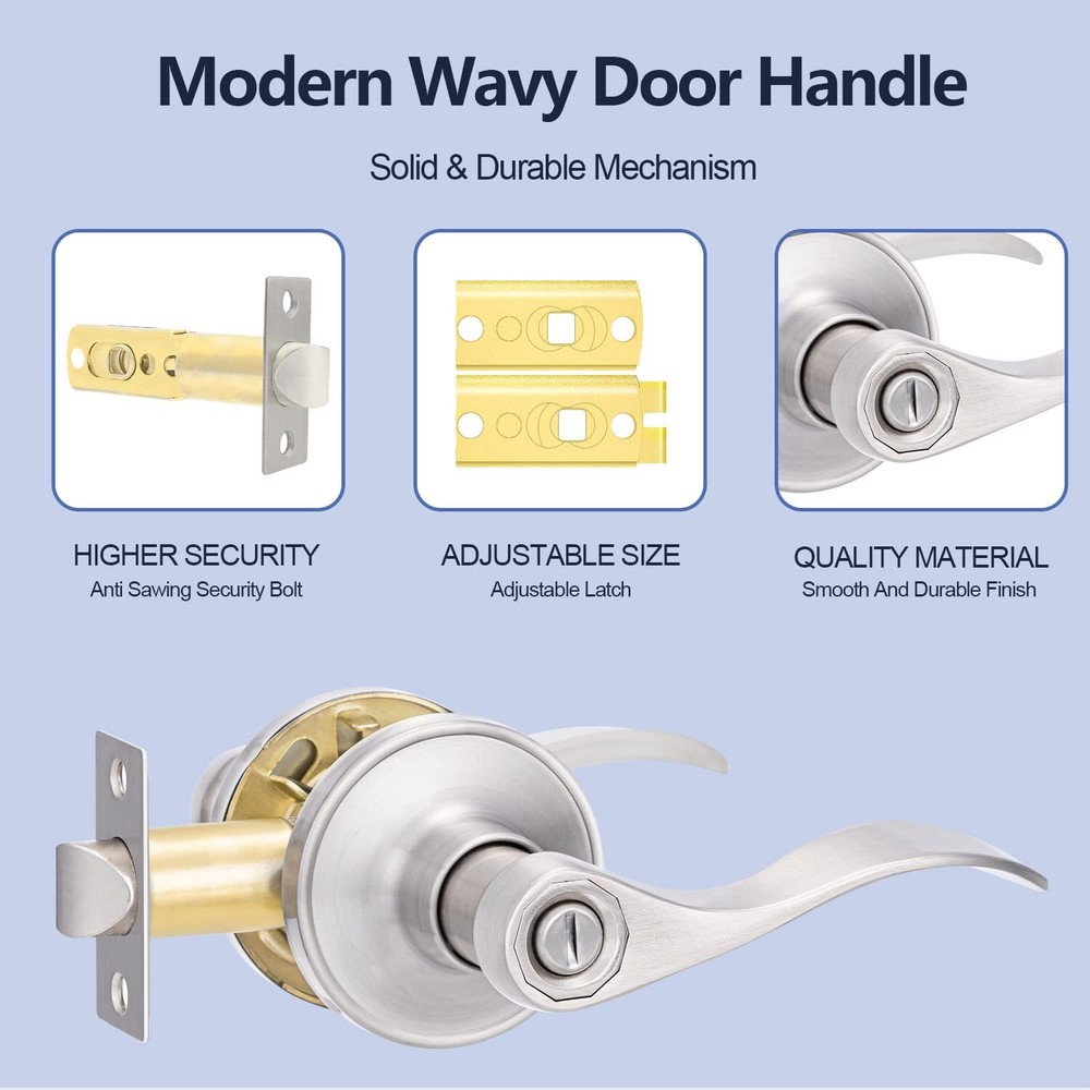 Ⅰ. Note: "Before making your purchase, ensure accurate measurements of your door's dimensions to a perfect fit. For any inquiries or concerns, our dedicated customer support team is at your service. Expect a swift response within 24 hours, ensuring a seamless shopping experience. Ⅱ. 【Privacy Door Locks 1 Pack】Elevate and style with our privacy door locks. Perfect for entryways, exteriors, bedrooms, and offices, this double-sided lock offers dual convenience, allowing locking from both inside and outside. Safeguard your space without compromising on accessibility. Ⅲ. 【Universal Size】 Our privacy door locks feature adjustable latches, accommodating door thicknesses ranging from 1-3/8" to 1-3/4" (34-45mm). With options for 60mm (2-3/8") or 70mm (2-3/4") latches, it ensures compatibility with a wide range of doors. Plus, the reversible handles cater to both left and right-handed door orientations for added convenience. Ⅳ. 【Wavy Style Traditional Design】Add a touch of elegance to your interiors with our Victoria wavy style door handles. Designed for interior doors and closets, these handles boast a unique swing of up to 75°, enhancing both functionality and aesthetics. Ⅴ. 【High Quality & Corrosion Resistance】Crafted from premium alloy and brass components, our interior door lever guarantees durability and resistance to rust, even in humid conditions. It has undergone rigorous testing, including a hydrochloric acid test, ensuring long-lasting color integrity. Perfect for areas like bathrooms, tool rooms, and backyard doors. Ⅵ. 【Easy Installation】Say goodbye to complex installations! Our privacy door locks offer a hassle-free setup process that takes just 5 minutes. Whether you prefer a manual screwdriver or an , the installation is quick and straightforward. Each package includes a complete lockset and all necessary accessories, ensuring a seamless installation experience.