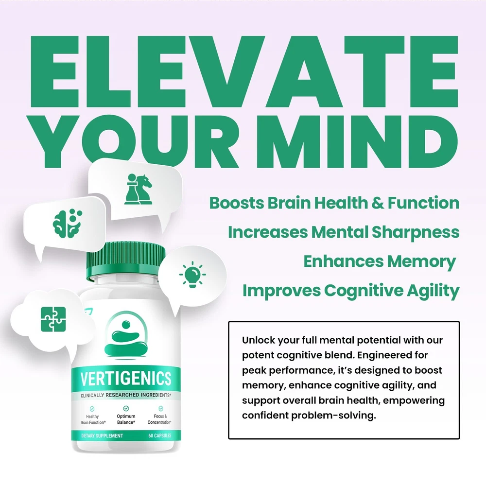 Unlock your potential with Vertigenics Brain Supplement Capsules . Our carefully crafted all-natural formula is designed to support your brain helping you stay focused and alert throughout the day. Vertigenics is made with quality ingredients that may provide a maximum strength supplement that fits seamlessly into your daily routine. Vertigenics Brain Supplement Capsules: Formulated that may support memory and focus, helping you stay sharp throughout your day. Verti Genics Maximum Strength All-Natural Formula: Crafted with quality ingredients that may provide for performance. Vertigenics Supports Brain Health: Designed that may support in maintaining abilities and overall brain wellness. Verti Genics Pills: Capsule that may support focus Vertigenics Enhance Brain: Incorporate Vertigenics Capsules into your routine for optimal support of mental focus and alertness.