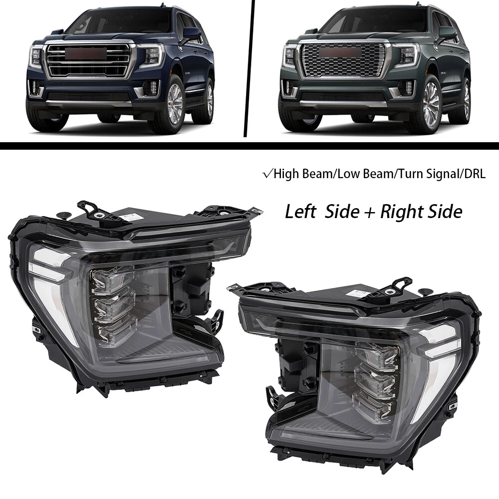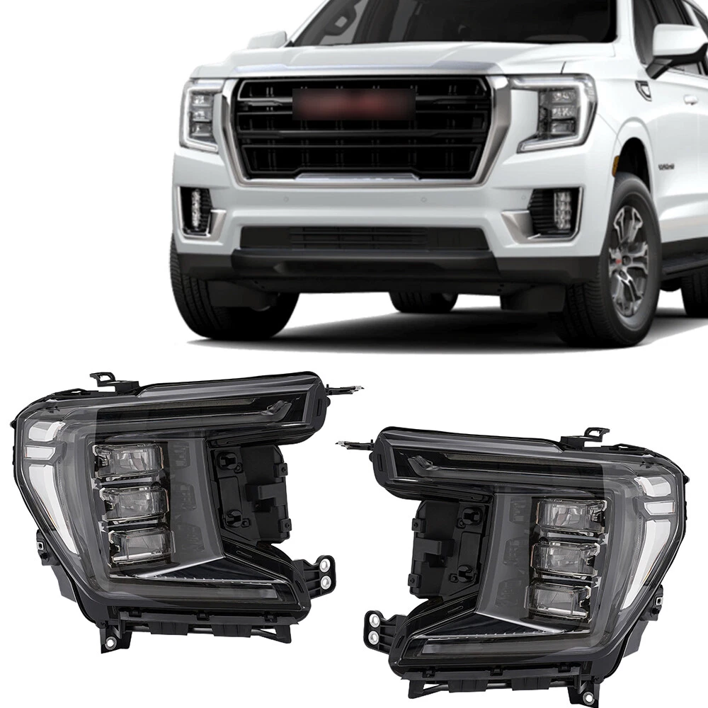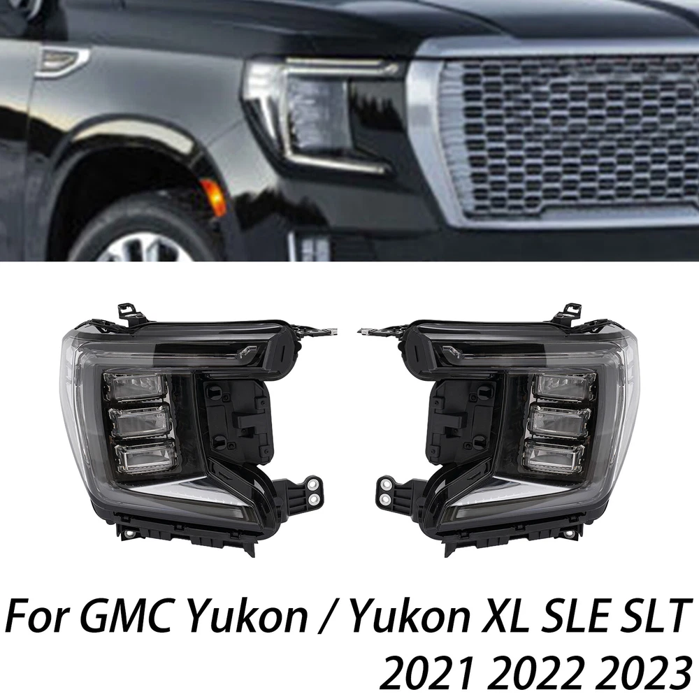 1 Pair For 2021 2022 2023 GMC Yukon LED Headlights Headlamps Black Left+Right