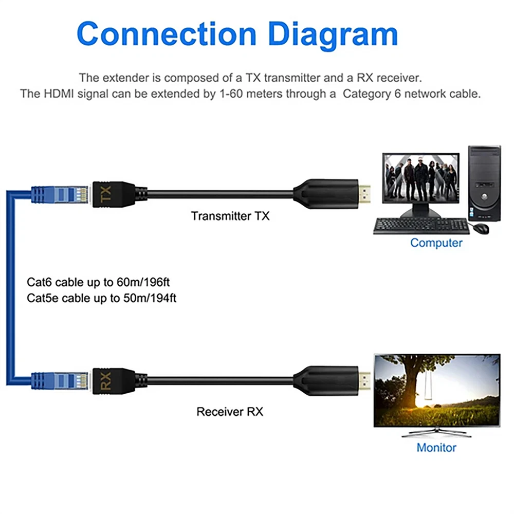 Product Description 1 Pair HDMI Extender Network RJ45 Extension Over CAT5e/6 Cable LAN For HDTV 1 Pair HDMI Extender RJ45 Extension Up To 50m Over CAT5e/6 Cable Network Ethernet LAN For HDTV Specification: TX interface: Input:1x Male HDMI, Output:1x Female Rj45 RX interface: Input:1xFemale RJ45, Output:1xMale HDMI Input/output video signal: Input:0.5-1.0 Volts p-p, Output: HDMI 1.3 Input DDC signal: 5 Volt p-p (TTL) Video format: 1920x1200,1080p DTV/HDTV format: 1080P/1080i/720P/576P/480P/576i/480i Power Supply: DC5V1A(Not included 5V1A power adapter) Features: 1. High-performance chip, audio and video synchronous output 2. The transmitter and receiver are used in pairs, Use an external power supply so that it transmit audio&video more stably 3. CAT-5e/6 cable can replace HDMI cable to achieve HD signal long-distance transmission 4. Using CAT-6 network cable, the signal transmission distance can reach 60 meters 5. The signal rate is up to 2.5Gbps, supports 1080P 6.TX/RX is equipped with fixed HDMI cable,fast installation,simple operation, plug and play 7. TX/RX cable length 23cm, fashionable design, compact and easy to carry Product List: 1 x Transmitter 1 x Receiver 2 x USB power cable(Not included 5V1A power adapter) 1x User Manual If you have any questions, please feel free to contact us via ebay. We usually respond within 24 hours. Payment Shipping Returns Contact Us We accept all verified payments from ebay. Orders will be shipped after receiving cleared payment. Payment due within 7 days after auction ends and for buy it now listings. We ship most of our orders within 24 hours, and may up to 48 hours for. If you want faster shipping way. Please contact us before making payment. Sometimes due to problems with our transportation company system, your shipping information may be delayed to update. We recommend that you try again after 3-4 days. If you still haven't checked the shipping information, you can contact us by ebay message. Always believe we can figure things out with communication, if it comes to return, the pacakge must be intact and the same as you receive. If you have any questions, please feel free to email our service specialists 24 Hours a Day, 7 Days a Week. We will reply you ASAP. Return/refund is accepted within 30 days after the buyer receives the item. NO exchange will be accepted after 30 days from the date when the item is received. Please contact us first before returning your product!!! If you have any questions, our Customer Service staffs welcome you to email us. We strive to answer all questions and resolve any problems as quickly as possible. You can contact us 7*24, we will reply at the first time, and we will surely solve your problems. Note: 1.We try our best to reply to your emails as soon as possible, however, due to high volume of daily incoming emails and time zone difference, we may not be able to reply your emails immediately. Please allow 1 business days for us to response. If you do not receive any reply from us, please check your email ensuring your mailbox has not reached full size. 2.Due to some ISP SPAM filter settings, you may not be able to receive our replies; if you have problems receiving our emails, you may need to use a different email account to contact us. 3.Please give us the opportunity to resolve any problem. We understand the concerns and frustrations you might have, and will try our best to resolve the issues. Please email us before leaving any negative feedback or open any dispute on PayPal. 4.We care about our valued customers, and will always try to help you. So if you have any problems, please e-mail us immediately. Payment We accept all verified payments from ebay. Orders will be shipped after receiving cleared payment. Payment due within 7 days after auction ends and for buy it now listings. Shipping We ship most of our orders within 24 hours, and may up to 48 hours for. If you want faster shipping way. Please contact us before making payment. Sometimes due to problems with our transportation company system, your shipping information may be delayed to update. We recommend that you try again after 3-4 days. If you still haven't checked the shipping information, you can contact us by ebay message. Returns Always believe we can figure things out with communication, if it comes to return, the pacakge must be intact and the same as you receive. If you have any questions, please feel free to email our service specialists 24 Hours a Day, 7 Days a Week. We will reply you ASAP. Return/refund is accepted within 30 days after the buyer receives the item. NO exchange will be accepted after 30 days from the date when the item is received. Please contact us first before returning your product!!! Contact Us If you have any questions, our Customer Service staffs welcome you to email us. We strive to answer all questions and resolve any problems as quickly as possible. You can contact us 7*24, we will reply at the first time, and we will surely solve your problems. Note: 1.We try our best to reply to your emails as soon as possible, however, due to high volume of daily incoming emails and time zone difference, we may not be able to reply your emails immediately. Please allow 1 business days for us to response. If you do not receive any reply from us, please check your email ensuring your mailbox has not reached full size. 2.Due to some ISP SPAM filter settings, you may not be able to receive our replies; if you have problems receiving our emails, you may need to use a different email account to contact us. 3.Please give us the opportunity to resolve any problem. We understand the concerns and frustrations you might have, and will try our best to resolve the issues. Please email us before leaving any negative feedback or open any dispute on PayPal. 4.We care about our valued customers, and will always try to help you. So if you have any problems, please e-mail us immediately. powered by
