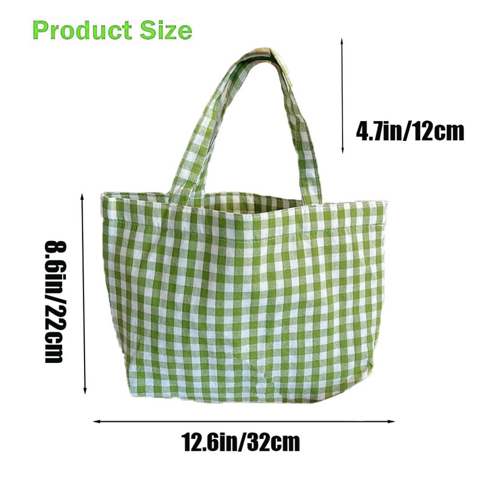 Description 1 Pc Plaid Small Canvas Tote Bag, Grocery Shopping Bag, Beach Bag 8.6" x 12.6" x 3.1" ❤ MULTIPURPOSE - The cute tote bag is ideal for beach, sports, office, traveling, shopping, grocery and any occasion you go. ❤ MATERIAL - The Canvas Tote Handbag is made of cotton, eco friendly, durable, reusable and easy to clean. ❤ DIMENSION - Canvas shopping bag: 8.6 x 12.6 x 3.1 inch/ 22 x 32 x 8 cm, handles: 4.7 inch/ 12 cm. ❤ RISK FREE -- If you are not satisfied with the Small Canvas Bag for any reason, please contact us for a replacement or refund in the limited time.