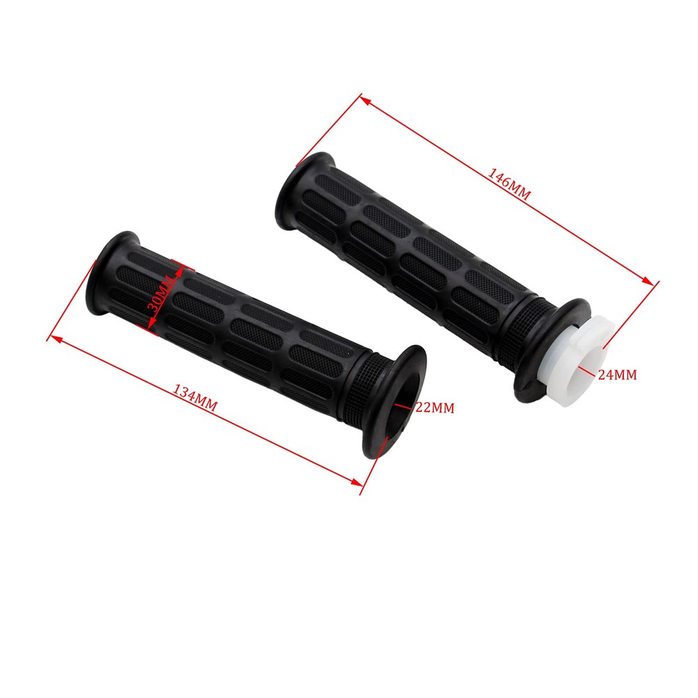 7/8" Hand Grips Rubber Throttle Handlebar Tube Sleeve For Motorcycle Street Bike CR125R CR250R CR80R CT90 High quality aftermarket 7/8" HANDLE GRIPS Throttle Cable Tube Sleeve For CR125R CR250R CR80R CT90 Throttle handle grips Includes a Single Throttle Cable Sleeve / Tube For MX Dirt Bike Off Road Inner Diameter: 22mm (left)/ 24mm (right); Outer Diameter: 30mm Length: 135mm (left)/ 146mm (right) Package included:1 x pair of hand grips (left & right)