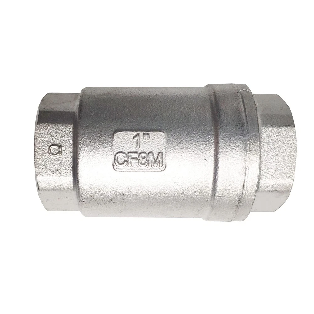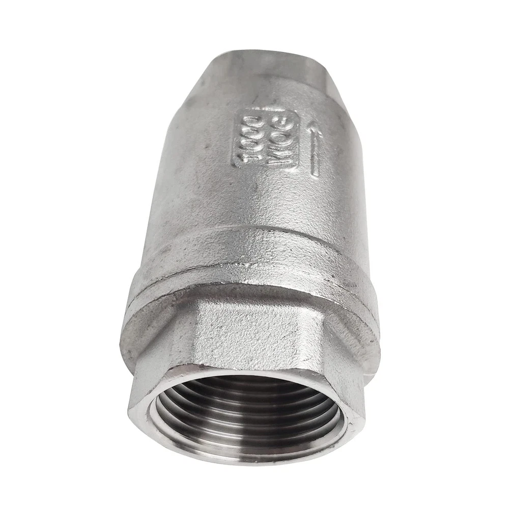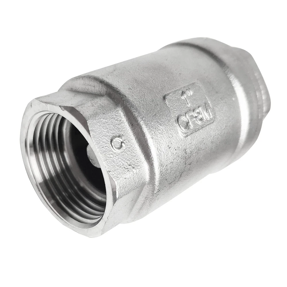 100% brand new and high quality,Cracking Pressure:4.5 psi Max Pressure:1000 Psi For Water, Oil,Gas (WOG1000),Port Types: Female NPT x Female NPT Working Temperature:-51°C to 232°C (-60°F to 450°F),Seals:NBR Check valves are used to help direct flow in direction. The stainless steel bodies and PTFE seals are highly corrosion resistant allowing these check valves to be used with a wide variety of fluids including, but not limited to water, oil, gas, air, light alkali's, acids, biodiesel, fuels and alcohols Vertical check valves may be used for any application. They utilize a spring system which shuts the Disc closed when there is not enough pressure to hold it open by the operating fluid. Fluid pressure in the backwards direction will cause the valve to close to prevent backflow