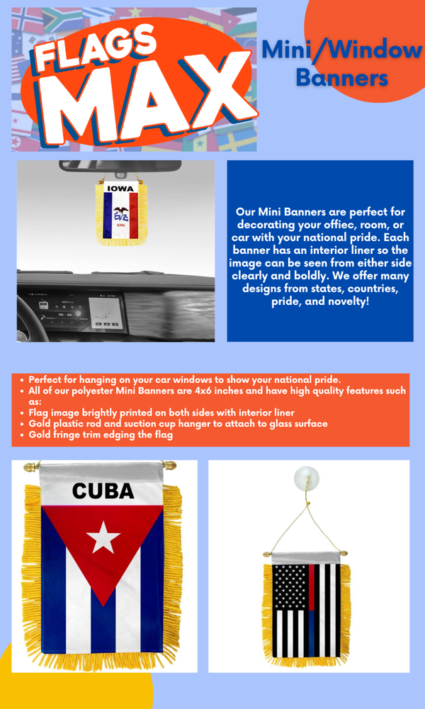 Features:gold fringe, suction cupCustomized:NoCare Instructions:Do Not Tumble Dry, Machine Wash, cool ironTheme:CanadaCountry/Region of Manufacture:ChinaType:Mini Banner FlagColor:MulticolorBrand:UnbrandedPersonalized:NoSubject:International Country Mini BannerSize:4x6inStyle:TraditionalMaterial:100% PolyesterItem Weight:4 ozOccasion:Auto decorCountry/State:United States