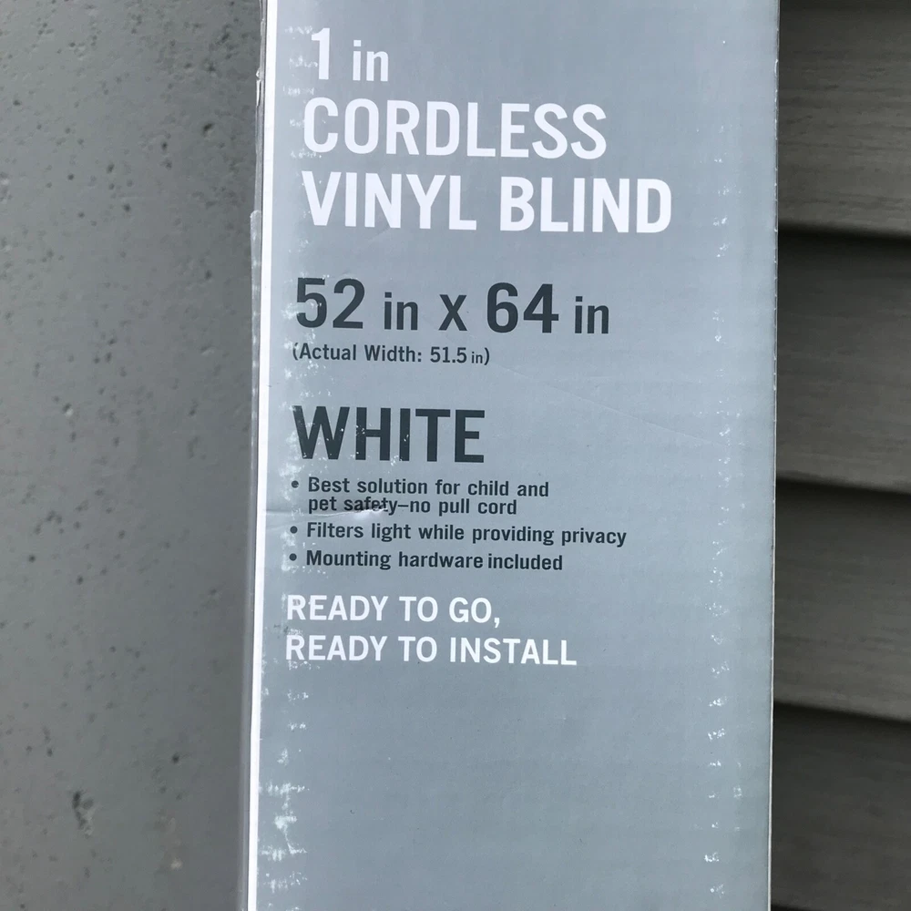 1 in Cordless Light Filtering Shade Vinyl Blind 52 in x 64 in White Privacy New