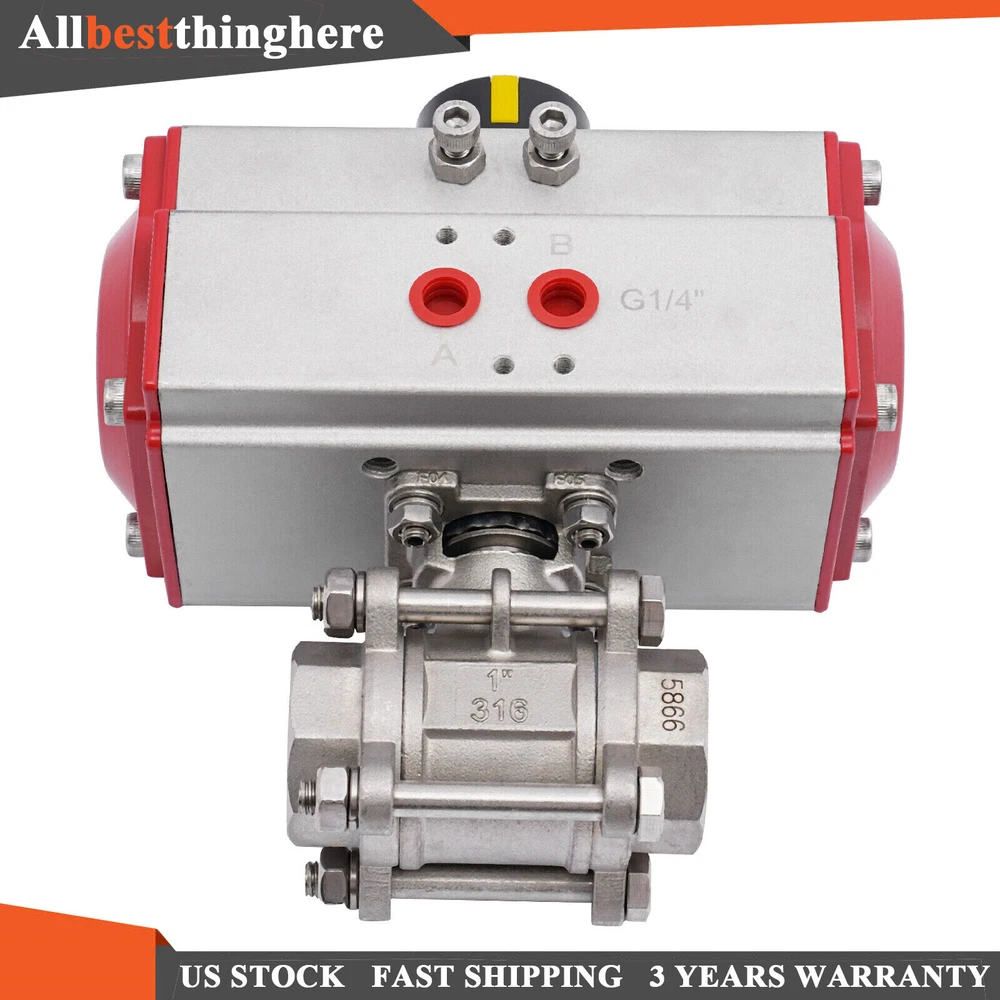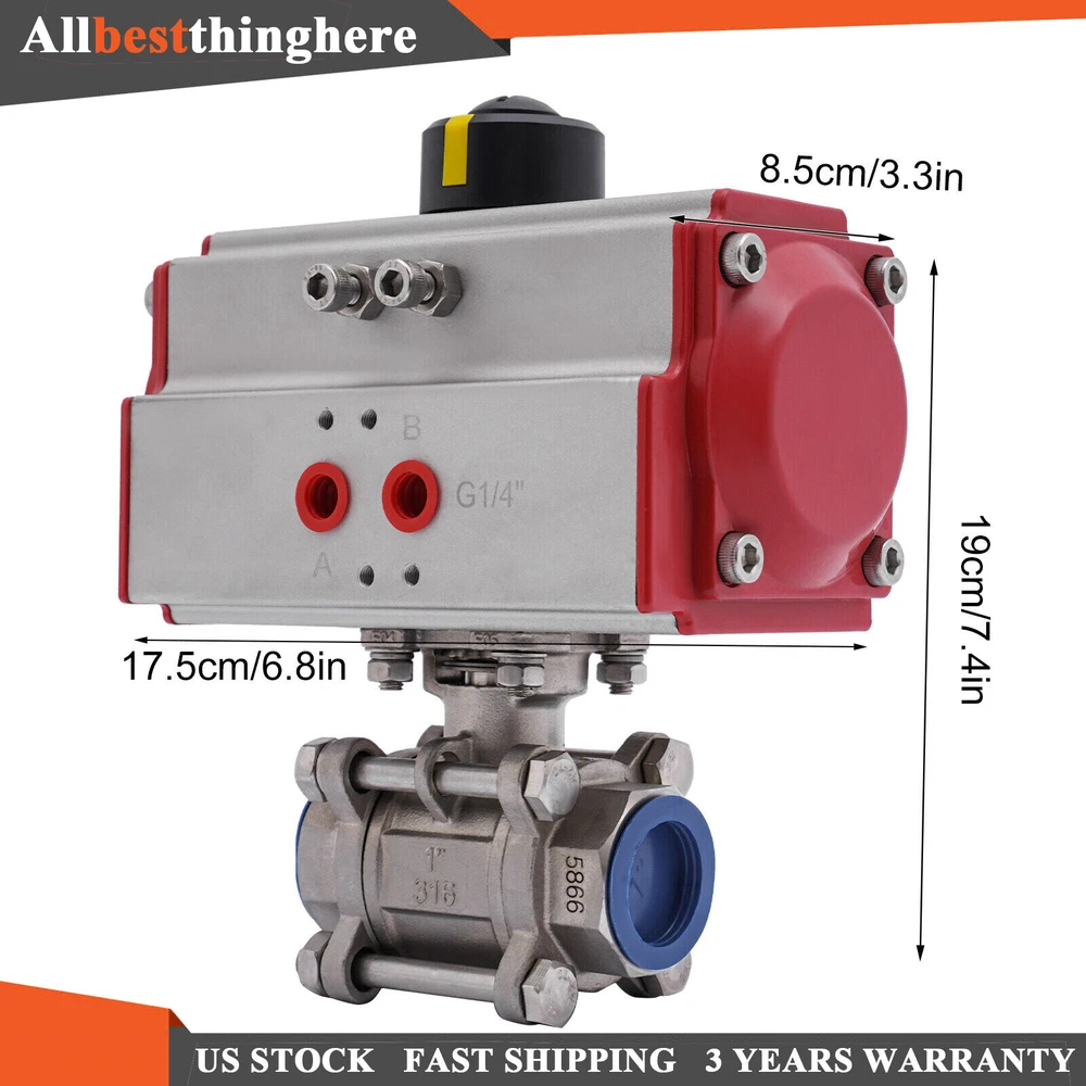 1" inch Pneumatic Stainless Ball Valve Single Acting Air Actuated Spring Return Pneumatic Ball Valve, 1 Inch Stainless Steel Ball Valve, Air-Operated Pneumatic Single Acting Description In modern industrial production, pneumatic stainless steel ball valves are widely used in fluid transport pipeline systems as efficient, stable, and reliable control equipment. This pneumatic ball valve we recommend for you has a compact structure, and is very easy to operate and maintain. The ball valve is made of PTFE sealing material, with good sealing performance, environmental protection , and high-temperature resistance . It has a wide range of applications and is a good helper in industrial production. Key Features Sturdy and Durable: The ball valve is made of 316 stainless steel, which is safe, durable, and resistant to corrosion and impact, so you can use it for a long time. Powerful Function : It can control the switching of air, gas, liquid, and other media. Compared with direct-acting ball valves, it is characterized by greater ease of use and durability. PTFE seals can effectively isolate air flow and regulate air flow and distribution. High Adaptability: It can be operated at room temperature and can be used for water, oil, gas, and other media up to a maximum temperature of 212°F. Such excellent characteristics enable this ball valve to work in a wider range of environments. Simple Installation: The simple construction of the product and the detailed installation parts will help you to install it quickly and accurately. All you need to do is install this product on the pipe and it is ready to use. Convenient to Use: It is simple in design, using pneumatic pressure to open the valve and a spring to close the valve for easy operation. Details Thickened Valve Body : It can improve the strength and sealing performance of the valve body, which in turn can guarantee the normal operation of the piping system. Dense Thread : It makes the connection and joints tight. Plastic Cover: The plastic cover on the ends of the ball valve protects the threads of the connection ports. Application It is suitable for water pipes, water pumps, corner rainwater tanks, external taps, rainwater connection barrels, and so on. It is widely used in water, chemical, petroleum, gas, papermaking, electric power, food, and other industries. Specification Model: 3PC DN25 Material: 316 Stainless Steel, PTFE Color: Red Process: CNC Precision Turning Type: Straight-through Function: Drainage Suitable Media: Water, Oil, Gas Drive Mode: Pneumatic Operating Pressure: PN16 Port Size: 1" NPT Female Port Standard Temperature Environment: Normal Temperature Action Object: Pump Flow Direction: One-way Structure Form: Fixed Ball Ball Valve Valve Function: Adjustment Pressure Environment: Normal Pressure Applicable Medium Temperature: Max 100℃/212℉ Product Size: 17.5*8.5*19cm/6.9*3.3*7.5in Package Size: 20*10*22cm/7.9*3.9*8.7in Gross Weight: 3.2kg/7.1lbs Net Weight: 2.8kg/6.2lbs Package Included 1*Pneumatic Ball Valve Notes Please note that the thread type of this product is 1 inch NPT and requires a suitable thread for installation. Please allow the slight color difference caused by the shooting light and 1-3 cm error due to manual measurement, and make sure you do not mind before ordering. Payment Delivery details Terms of sales About us Contact us Payment We accept ebay payment 。 Fees such as import duties, taxes are not included in the item price or shipping costs. These charges are the buyer's responsibility. Delivery details Shipping: 2-9 working days to: USA Terms of sales We maintain high standards of excellence and strive for hundred percent customer satisfaction. Feedback is very important to us. We hope that you contact us immediately before you give neutral or negative feedback, so that we can address your concerns. It is impossible to address issues if we do not know about them! About us Your satis faction is our ultimate goal. We work hard to earn your trust and future business. Our certified technicians have tested each item before shipping. The unit comes with 1 year limited warranty on all manufacturing defects. a) If you receive a defective item, you may return it or ask for a discount. Please contact us within 14 days after you receive the package. b) What you returned must be intact and in its original packaging as re? u. Customer is responsible for shipping costs of the returned item. c) We will cover the cost of shipping back t with the shipping rate indicated in the registration page. We will send you a new unit or refund the full payment you paid. Thank you. Contact us Business Hour Business Hour: Monday To Friday: 8:30 AM to 5:00 PM (Beijing China time) Due to time zones, our reply to your questions may not be immediately. But within above working time, we will reply your email within 24 hours. If it's non-workdays, please kindly be patient and wait till Monday. Please contact us with ebay message. Please feel free to contact us if you have any questions. Monday To Friday: 8:30 AM to 5:00 PM (Beijing China time) Due to time zones, our reply to your questions may not be immediately. But within above working time, we will reply your email within 24 hours. If it's non-workdays, please kindly be patient and wait till Monday. Please contact us with ebay message. Please feel free to contact us if you have any questions. Type Pneumatic Ball Valve Valve Operation Air-Operated Brand Unbranded Suitable Media Water, Oil, Gas, Water, Oil, Fuel, Wastewater Model 3PC DN25 Material 316 Stainless Steel, PTFE Features Straight-through Function Drainage Operating Pressure PN16 Port Size 1" NPT Female Port Standard Action Object Pump Flow Direction One-way Structure Form Fixed Ball Ball Valve Valve Function Adjustment Pressure Environment Normal Pressure Temperature Environment Normal Temperature Applicable Medium Temperature Max 100℃/212℉ MPN Does not apply Color Red UPC does not apply On Feb 10, 2025 at 23:27:45 PST, 