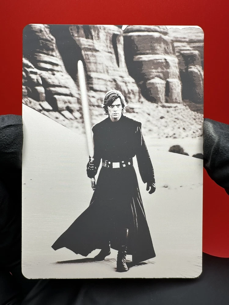 NEXUS MINT Presents - Luke Skywalker 1 oz .999 Fine Silver Card (1 of 1) We are thrilled to announce a significant enhancement to our image resolution for our laser engraving process. Our dedicated team has pushed the boundaries of innovation to deliver a product that exemplifies sophistication and precision like never before. Prepare to be amazed as our laser engraving technology now boasts an extremely high resolution, ensuring every intricate detail is captured with stunning clarity. Each Nexus Mint Silver Card is a masterpiece, meticulously crafted from the finest .999 pure silver and engraved with a level of detail that will leave you in awe. Introducing our latest innovation: the Reverse Side Boast with a stunning "Frost Silver finish". After extensive testing and development, we are proud to present the new frost texture that takes our craftsmanship to astonishing heights. This addition showcases our commitment to excellence and luxury. The reverse side is meticulously engraved with essential details, including the Nexus Mint logo, weight, purity, and an exclusive mintage. This unique feature ensures that each piece is truly a one-of-a-kind art piece. What sets our silver card apart is the innovative and advanced laser engraving process employed, representing the pinnacle of our craftsmanship. This cutting-edge technique allows us to capture and replicate images with unparalleled clarity and finesse, surpassing traditional methods and setting a new standard in precision engraving. Whether you're commemorating a special occasion, gifting a luxurious keepsake, or adding to your collection of precious metals, our Nexus Mint Silver Cards are the epitome of elegance and quality. Expect nothing less than perfection as you hold a piece of art in your hands, reflecting our commitment to excellence and your discerning taste. Elevate your collection today with the Nexus Mint .999 Fine Silver Cards – where every engraving tells a story of precision and beauty. Don't miss out on experiencing the pinnacle of laser-engraved silver cards. Order now and see the difference for yourself! Card Highlights: - Metal content: .999 Fine Silver - Approximate weight: 1 oz ( However, the weight of each card may vary slightly due to material being removed in the laser engraving process.) - Dimensions of the card: 2 1/2 x 3 1/2 - 0.02 Inches (0.51mm) thickness - Exclusive mintage: 1 - Packaging includes: Luke Skywalker 1 oz .999 Fine Silver Card (1 of 1) Ultra clear slab to handle and showcase the fine silver card (35pt card) (SEALED) One-Touch stand to display the fine silver card Trading card protectors Bubble wrapped At Nexus Mint our top priority is our customers. We are dedicated to ensuring that every customer service experience we offer is second to none. Our business is built on the premise of community engagement. We therefore thrive to promote and maintain an interactive environment that facilitates positive relationships with our customers. We hold our products to a high standard and each product must satisfy our quality assurance test. For us every single detail matter, from packaging to the production of the actual fine silver card. We aim to produce products that are innovative, timeless and of high quality. We're always happy to help! for questions regarding your order please don't hesitate to ask. Count on Nexus Mint for all your premium, fine silver and gold cards, bars and coins.