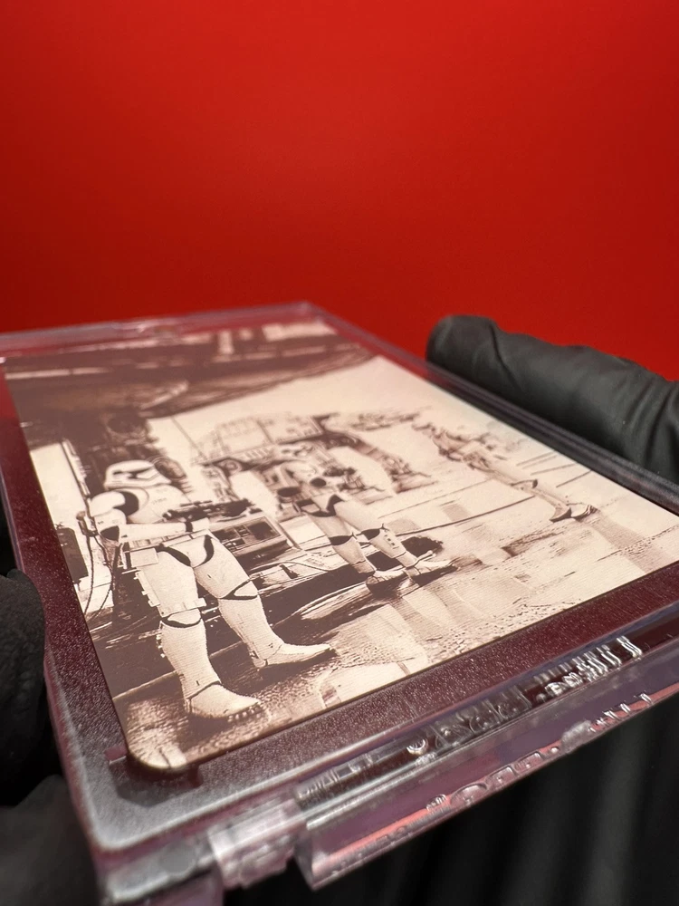 NEXUS MINT Presents - Stormtroopers 1 oz .999 Fine Silver Card (1 of 1) We are thrilled to announce a significant enhancement to our image resolution for our laser engraving process. Our dedicated team has pushed the boundaries of innovation to deliver a product that exemplifies sophistication and precision like never before. Prepare to be amazed as our laser engraving technology now boasts an extremely high resolution, ensuring every intricate detail is captured with stunning clarity. Each Nexus Mint Silver Card is a masterpiece, meticulously crafted from the finest .999 pure silver and engraved with a level of detail that will leave you in awe. Introducing our latest innovation: the Reverse Side Boast with a stunning "Frost Silver finish". After extensive testing and development, we are proud to present the new frost texture that takes our craftsmanship to astonishing heights. This addition showcases our commitment to excellence and luxury. The reverse side is meticulously engraved with essential details, including the Nexus Mint logo, weight, purity, and an exclusive mintage. This unique feature ensures that each piece is truly a one-of-a-kind art piece. What sets our silver card apart is the innovative and advanced laser engraving process employed, representing the pinnacle of our craftsmanship. This cutting-edge technique allows us to capture and replicate images with unparalleled clarity and finesse, surpassing traditional methods and setting a new standard in precision engraving. Whether you're commemorating a special occasion, gifting a luxurious keepsake, or adding to your collection of precious metals, our Nexus Mint Silver Cards are the epitome of elegance and quality. Expect nothing less than perfection as you hold a piece of art in your hands, reflecting our commitment to excellence and your discerning taste. Elevate your collection today with the Nexus Mint .999 Fine Silver Cards – where every engraving tells a story of precision and beauty. Don't miss out on experiencing the pinnacle of laser-engraved silver cards. Order now and see the difference for yourself! Card Highlights: - Metal content: .999 Fine Silver - Approximate weight: 1 oz ( However, the weight of each card may vary slightly due to material being removed in the laser engraving process.) - Dimensions of the card: 2 1/2 x 3 1/2 - 0.02 Inches (0.51mm) thickness - Exclusive mintage: 1 - Packaging includes: Stormtroopers 1 oz .999 Fine Silver Card (1 of 1) Ultra clear slab to handle and showcase the fine silver card (35pt card) (SEALED) One-Touch stand to display the fine silver card Trading card protectors Bubble wrapped At Nexus Mint our top priority is our customers. We are dedicated to ensuring that every customer service experience we offer is second to none. Our business is built on the premise of community engagement. We therefore thrive to promote and maintain an interactive environment that facilitates positive relationships with our customers. We hold our products to a high standard and each product must satisfy our quality assurance test. For us every single detail matter, from packaging to the production of the actual fine silver card. We aim to produce products that are innovative, timeless and of high quality. We're always happy to help! for questions regarding your order please don't hesitate to ask. Count on Nexus Mint for all your premium, fine silver and gold cards, bars and coins.