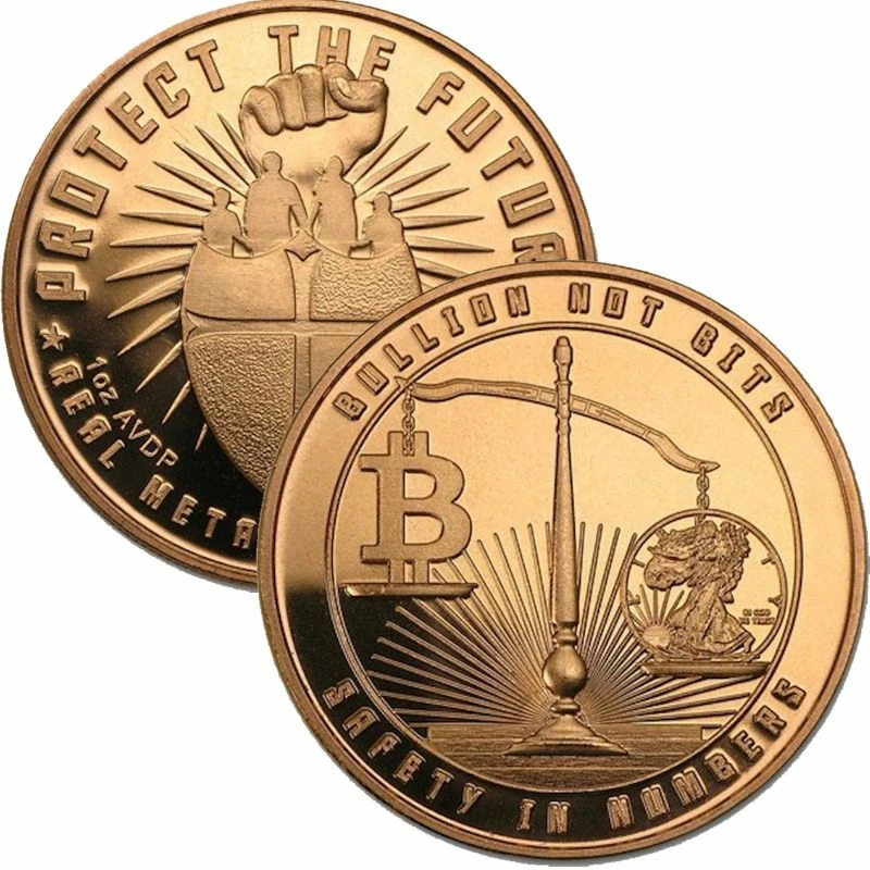 1 oz .999 Bitcoin & Cryptocurrency Pure Copper Brilliant Uncirculated Round Coins Diameter = 39 mm (1.54 in.) ~ Slightly larger than a US Silver Dollar Thickness = 2.5 mm (0.098 in.) Gross Weight = 1 Avoirdupois ounce (28.35 grams) Each coin will be shipped in a clear protective presentation sleeve. Fast Same Day Shipping All orders place by 3pm EST, Monday - Friday, will be shipped the same day! Your Satisfaction Is Guaranteed! If for any reason you are not 100% satisfied with your purchase simply return it to us within 30 days for a full refund. Visit our store to see many more coins.