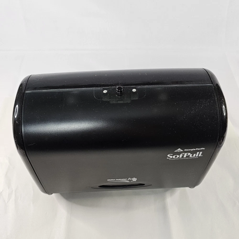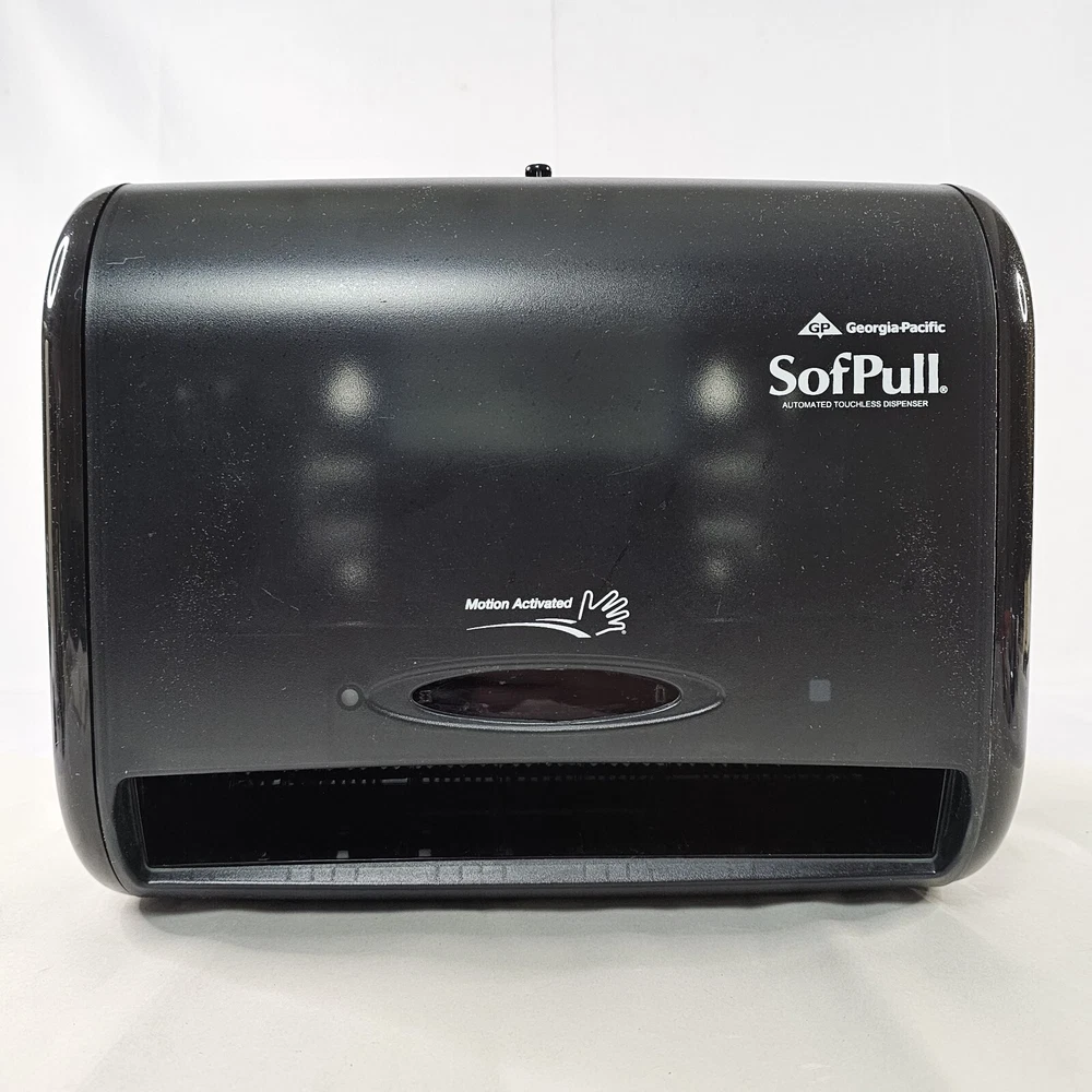 10" Automated Touchless Paper Towel Dispenser Georgia Pacific SofPull. From Real Estate Office That Was Only In Business For 3 Years. Barely Used. Takes 4 D Size Batteries. Please Check All Pictures Closely For A More Detailed Visual Description. Ships Out Free Within One Business Day.