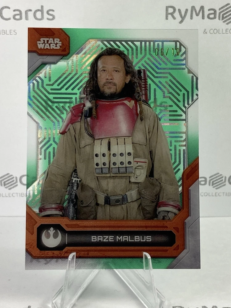 This 2024 Topps Star Wars High-Tek Imperial pattern base card features Baze Malbus, Green Diffractor parallel #’d 06/10. Please contact me if you have any questions. Combined shipping available.