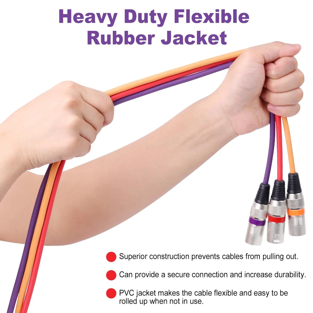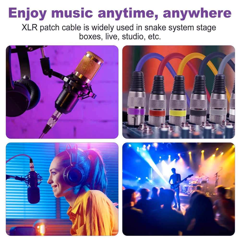 10 Pack XLR Microphone Cable 15 Ft XLR Male to Female Mic Cable 3 Pin Balanced Shielded Microphone Cord for Recording Studio, Podcast, Mic Mixer, Amplifier, Multicolors Multicolors Color XLR Microphone Cable: you will receive 10 pieces of colorful XLR microphone cables in 10 different colors, including red, orange, yellow, green, blue, purple, brown, gray, white, black, 15 feet long each, the mic cables in different colors allow you to easily match and track microphone, audio mixer wires High Quality 3 Pin XLR Patch Cord: balanced microphone cables are mainly made of OFC conductor construction and PVC protective cover, with good noise cancellation and flexibility, easy to be rolled up when not in use, able to serve you for a long time. Our colored microphone XLR cords have shielding anti EMI/RFI, heavy duty metal connectors for wireless mic sets. Great for HI-FI sound, noiseless and high fidelity without static interference XLR Male To XLR Female Mic Cord: the microphone wires are designed for microphones, and recording, mixing, and lighting equipment with 3 pin XLR connectors, offering you quality sound without noise and static interference. Strong indestructible metal connectors treats cable in a more carefree manner, avoid any ends broken. Easy to Clean: compared with nylon braided cables, the balanced XLR cable is covered with quality PVC sleeve, soft and flexible, easy to clean, just wipe it with a damp cloth to remove dirt and dust, saving you time and effort. Our XLR Patch Cables are 3-pin balanced and shielded XLR cables that are good for replacement cables Wide Application: the microphone cord is compatible with equipment with 3 pin XLR connectors, such as studio harmonizers, shotgun microphones, digital audio mixers, audio players, speaker systems, and stage lighting with an XLR cable port, the multicolored cables are easy for cable recognition and management