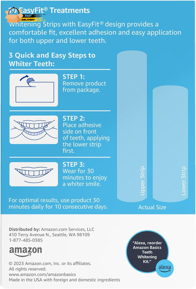 Store New Arrivals Add to Favorite View Feedback Contact 10 Day Teeth Whitening Strips Kit, 20 Count (Previously Solimo) Description Number of Items 1 Product Dimensions 1.88 x 3.75 x 5.5 inches; 1.45 ounces Country of Origin USA Product Benefits Whitening Item Form Strip Included Components Whitening Strip ENAMEL SAFE FORMULA: Our tooth whitening strips are enamel safe CONVENIENT DAILY USE: Integrate our white strips for teeth whitening into your daily routine once a day for thirty minutes, for ten consecutive days LONG-LASTING RESULTS: If you like Crest 3D White Classic Vivid No Slip Whitestrips, we invite you to try Amazon Basics 10 Day Teeth Whitening Strips Kit ALEXA ENABLED REORDERING: Simplify your shopping with Alexa voice compatibility and order your next box of Amazon Basics 10 Day Whitening Strips with just a voice command Product Description This comprehensive, enamel-safe teeth whitening kit comes with a 10 day supply of 20 teeth whitening strips. The slip-free, dry-touch strips are easy to apply. Just 30 minutes a day is all it takes for 10 consecutive days to see a whiter smile with these teeth whitening products From the Manufacturer Amazon Basics ABOUT US We offer the best prices around on high quality products. Our E-store includes media such as books, movies, music and games while offering electronics, toys, sporting apparel, clothing, tools, general home, garden items and more. SHIPPING We are always working hard to ensure your package arrives as soon as possible. Please understand that some factors like weather, high postal traffic, and the performance of shipping companies are outside of our control. We offer free shipping to the lower 48 states and ship within 2 business days of payment, usually sooner. We do not accept P.O. Boxes. Please provide a physical address. For shipping outside of the continental USA, we only use eBay's Global Shipping Program.The item is shipped to KY and then sent to the rest of the world. International customers are responsible for all duties and taxes. Continue to check out in order to calculate costs for shipping the item to your country. Messages regarding eBay's Global Shipping Program MUST be directed at eBay EXCLUSIVELY. RETURNS We offer a 30-Day Return Policy on items which you are not completely satisfied with. You have the option for a full-refund or an exchange of the item. No returns are available on items shipped outside of the USA. PAYMENT We accept PayPal. CONTACT US This page content is yet to come Please ad us to your favorite seller and visit again later Thank You CUSTOMER SATISFACTION We try our very best to make sure every customer is completely satisfied. If there's a problem, message us! We're happy to help. WE ACCEPT Copyright © 2021 AutoDS. | All Rights Reserved