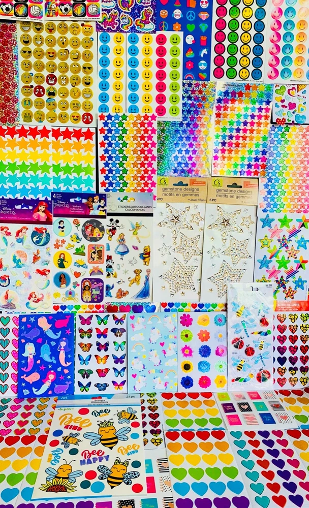 Happy Mixed Sticker Lot | The Ultimate Kit | Qty. 10 Sticker Sheets Fun Assortment of Glossy, Glitter, Metallic, Foil, Laser, Puffy, Scrapbook, Cartoons, Bubble, Pop Up Stickers For Everyone! I have included a large variety of pictures of the assortment available. The pictures give you an idea of what you will be receiving. Please Note: You will not receive everything pictured. You can choose any themes you like. Please contact me with any special requests. This HUGE Variety of fun designs stickers can be used in parties, classroom, school and home, good for reward for students, potty training, adding inside a birthday card, game activities, entertaining toddlers, etc. Perfect Gifts for Kids & all Occasions: Can be given as a gift for kids, girls, boys, toddlers, teens, students, friends, and classmates, they will love it!